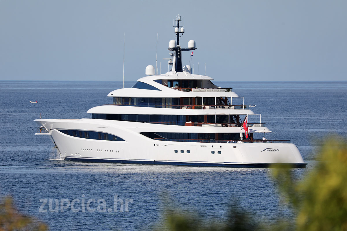 Luksuzna Faith je duga 96,55 metara izgrađena je 2016. godine, ima čelični trup i aluminijsku nadgradnju. Pokreću je MTU motori od 3000 KS od kojih svaki daje maksimalnu brzinu od 17 čvorova i krstareću brzinu od 15 čvorova. Može primiti 18 gostiju u 9 kabina. U grušku luku je uplovila prije tri dana i od tada krstari dubrovačkim akvatorijem.