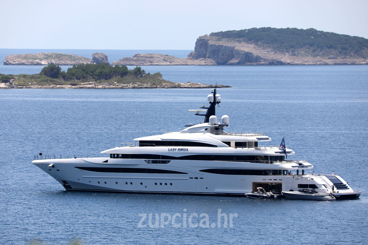 Najbliža, neposredno ispred Plata je"Lady Jorgia" izgrađena 2017. godine koja je prije nosila ime Odyssey II, je svijet luksuza, spokojstva i usluge sa šest zvjezdica namijenjen charteru. Duga je 74 metra a može smjestiti do 12 gostiju u 8 soba, uključujući glavni apartman, 1 VIP prostoriju, 4 dvokrevetne kabine i 2 dvokrevetne kabine. Prema stranici yachtcharterfleet.com cijena njenog tjednog najma iznosi 750.000 eura bez troškova.