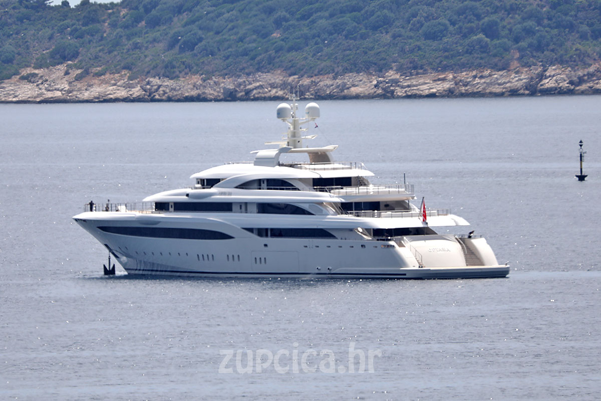 Posljednja je u Župski zaljev oko 14 sati uplovila 85-metarska O'Ptasia elegantna ljepotica modernog dizajna dovršena i isporučena 2018. godine. Riječ je o privatnoj charter jahti, na kojoj se može smjestiti do 12 gostiju u 11 soba, a za koje se brine posada od 26 članova. Na palubi ovog broda nalaze se brojni sadržaji, poput vanjskog bara, jacuzzija, posebno uređenog prostora za sunčanje i opuštanje, jahta ima i vlastiti lift, zatim SPA, bazen, teretanu ... a cijena najma joj iznosi oko 800.000 eura tjedno.