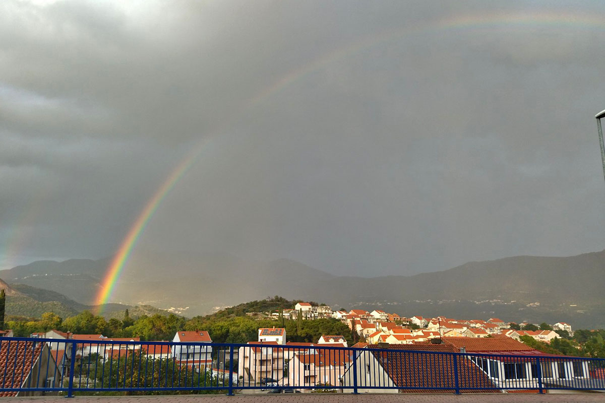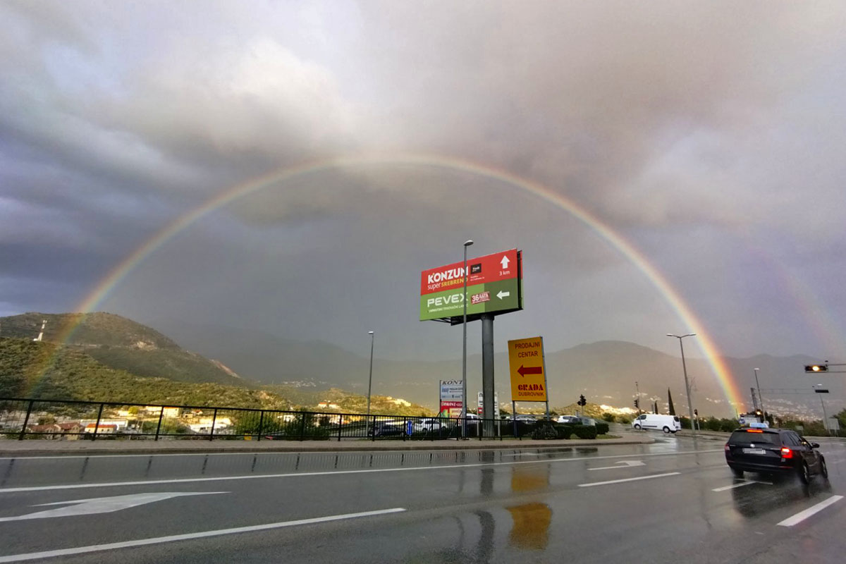 Promjenjivo vrijeme ovog petka kada su se između kapi povremeno probijale i zrake sunca, bilo je savršeno za pojavu duge koja se u popodnevnim satima nadvila nad dijelom Župe.