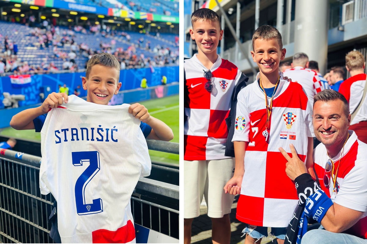 Unatoč nezadovoljstvu rezultatom Hrvatske koja je danas protiv Albanije uzela samo bod, mali nogometaš Župe dubrovačke Franko Barović koji je s obitelji bio na utakmici u Hamburgu ima razloga za veselje. Naime reprezentativac Josip Stanišić je nakon utakmice skinuo dres te ga dao Franku.