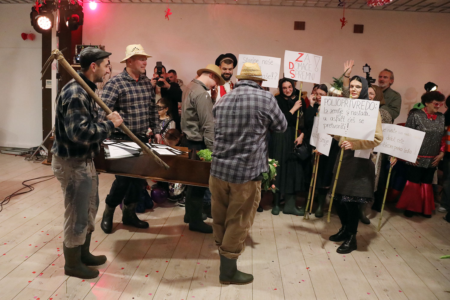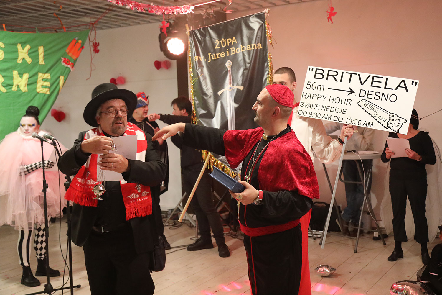 A ostavština kao i karnevalske scene se bavila očekivanim temama; počevši od bivše općinske vlasti, preko varijanti brze ceste, pa Kupara, Pelegrina, "Pastirskog" centra i sve do neizostavnih "tubaša". Za kraj je prikazan i 15-minutni igrokaz - predstava, koja je na Valentinovo ugostila sve; od popularnih pjevača, lokalnih i državnih političara, sve do svjetskih moćnika koji su se pogođeni ljubavnim strelicama u duhu Valentinova, ali i već spomenutih "tubaša" svi grlili i ljubili, jer kako kaže pjesma - Ljube se dobri, loši i zli...