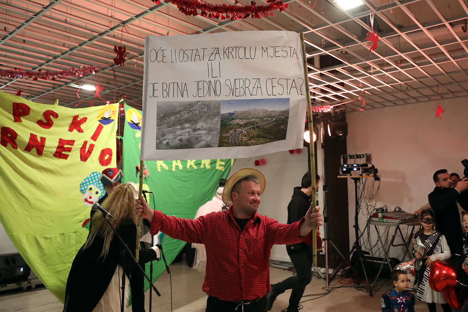 U vrijeme kad nam sve dolazi iz Kine, očito je i Župskom karnevalu suđeno da se održava u kineskom restoranu, doduše u bivšem u Spioni. Kako su se i sami našalili, Župski karnevo eto ispo "Karnevo s Temua", ali da nije bilo ex kineskog, ko zna bi li se po ovakoj kiši uopće imo đe održat.