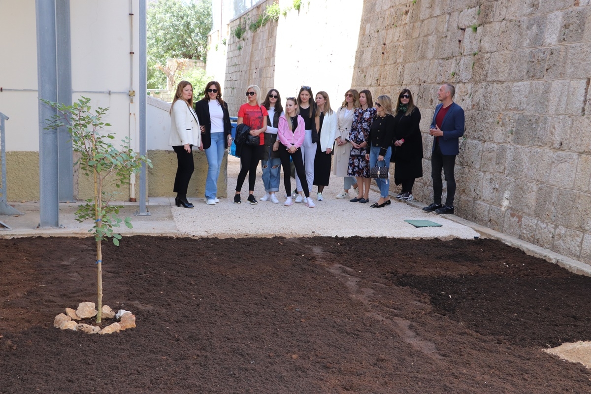Privremena pročelnica Upravnog odjela za obrazovanje, kulturu i sport Ana Čeović i pročelnik Upravnog odjela za zaštitu okoliša i komunalne poslove Miho Baće danas su u dvorištu Gimnazije Dubrovnik podržali sadnju stabala rogača.