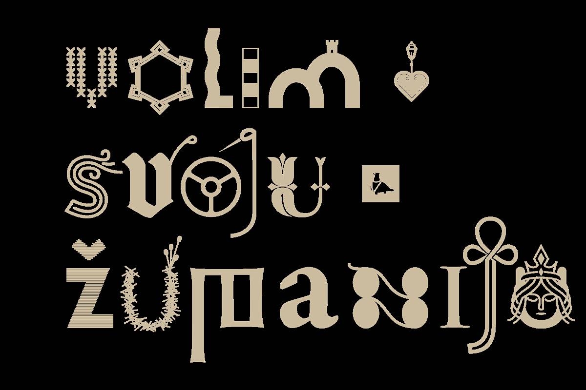 Nevjerojatna heterogenost svake županije slikovito je prikazana kroz manje ili više prepoznatljive elemente pa imamo primjerice; buru za Ličko-senjsku županiju, specifični uzorak sa šibenske kape za Šibensko-kninsku, zlatovez za Osječko-baranjsku, glagoljicu za Primorsko-goransku županiju, sinjsku alku za Splitsko-dalmatinsku…