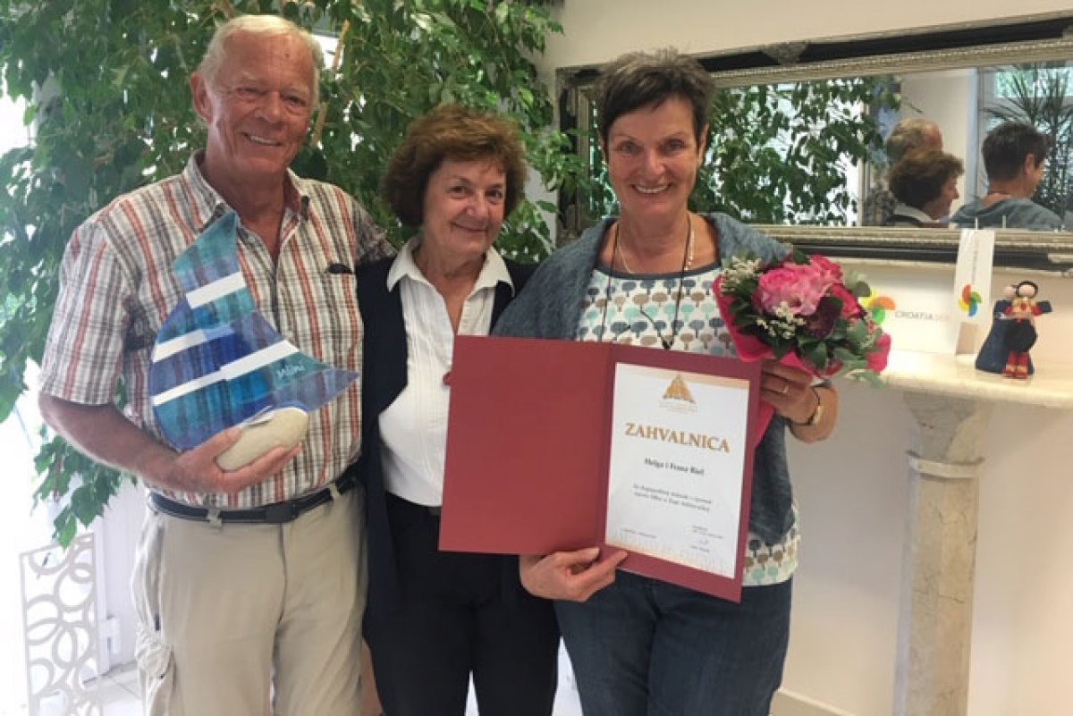 Turistička zajednica Općine jučer je obitelji Franza i Helge Riel dodijelila nagradu za dugogodišnji dolazak u Mline. Ova obitelj već dugi niz godina boravi kod svojih domaćina Pava i Helene Handabaka.