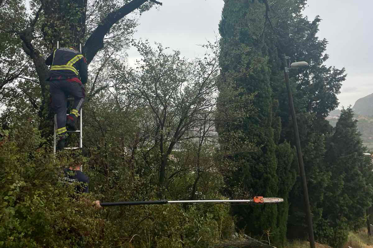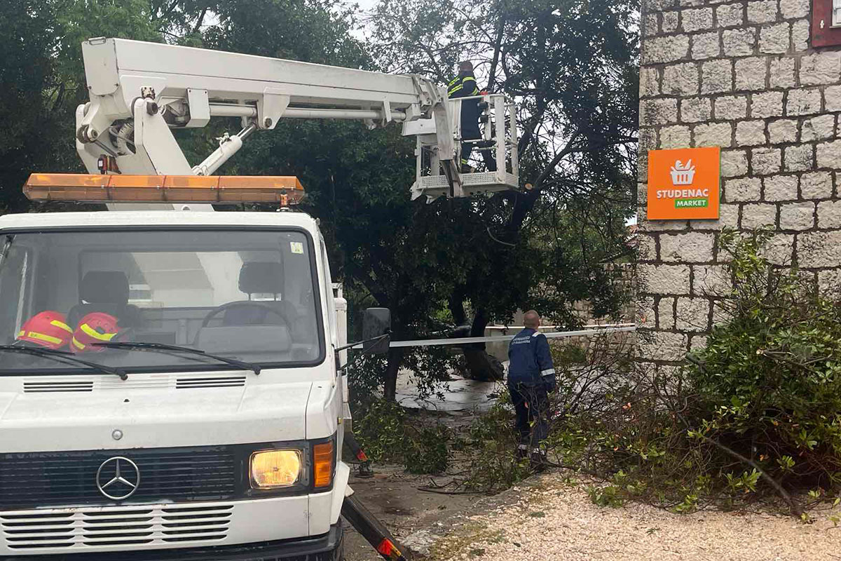 Zbog grmljavinskog nevremena, jake kiše i vjetra DVD Župa dubrovačka je jutros imao osam intervencija; sedam zbog pilanja srušenih grana stabala te jedno ispumpavanje vode na Dupcu. Na intervenciji je osam vatrogasaca s tri vozila, a uklonjeno je i stablo lovorike koja je pala na Rijeci i pri padu oborilo i stup el. rasvjete ispred butige.