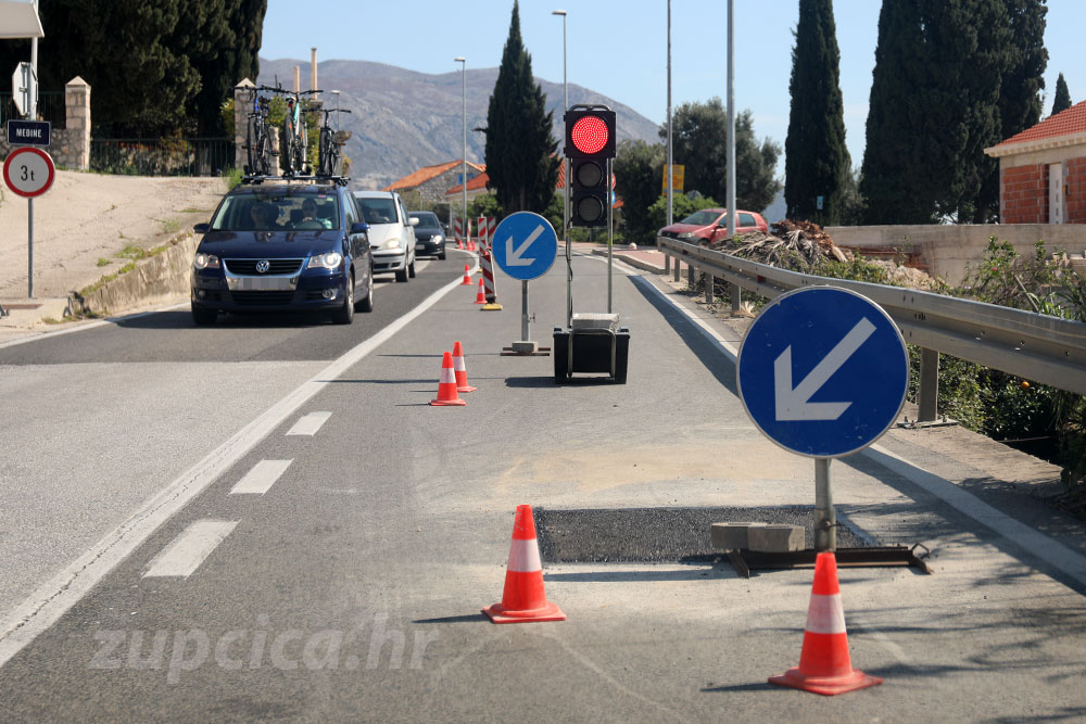 Jučer i danas magistralom preko Trgovišta i Međina ponovno se vozi uz regulaciju semaforima. Razlog su novi radovi oko šahtova elektro instalacija u trupu ceste. Isto kao i kod šahta zbog kojeg se uz pomoć semafora vozilo prije dvadesetak dana, djelatnici Dubrovnik cesta su umjesto metalnog poklopca ovim radovima asfaltirali otvore još dva šahta na dionici od Trgovišta do Međina.