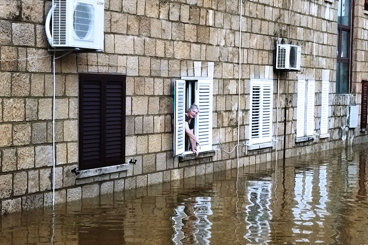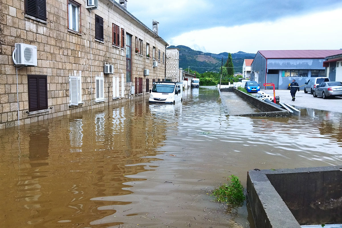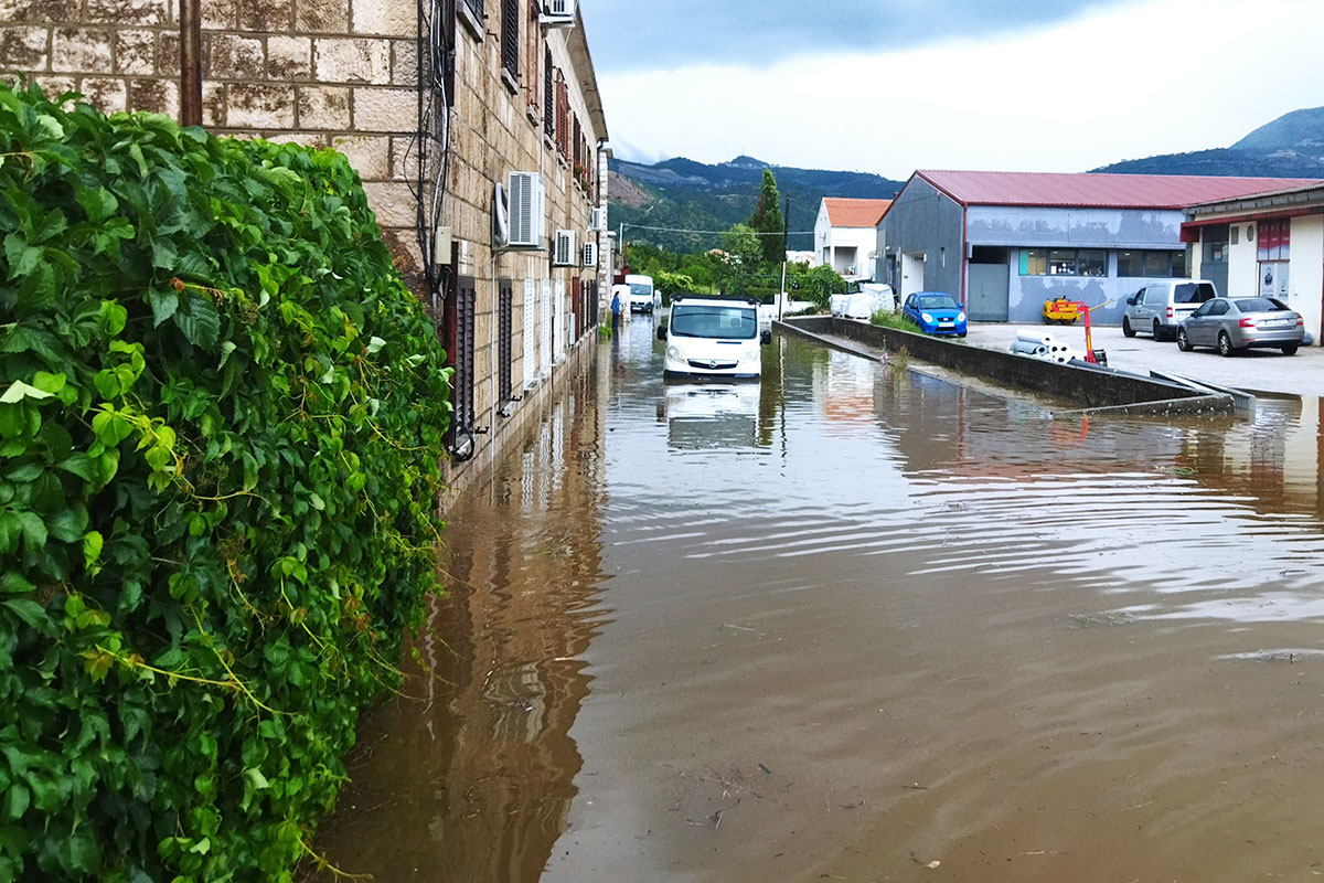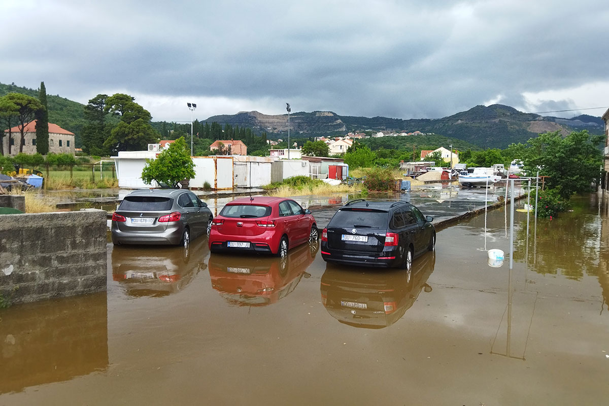 Kamenu zgradu i okolne kuće, parkiralište, vozila i ceste sjeverno od magistrale u Kuparima u ranim popodnevnim satima nakon dužeg vremena ponovo su poplavile oborinske vode. Današnja obilna kiša se po količini oborina u kratkom vremenu može mjeriti samo s onom koja je uzrokovala veliku poplavu u rujnu 2014. godine, ali zahvaljujući radovima izvršenim nakon te poplave, poslijedice su puno manje.