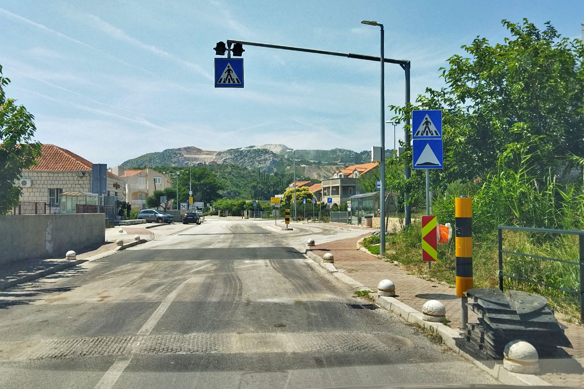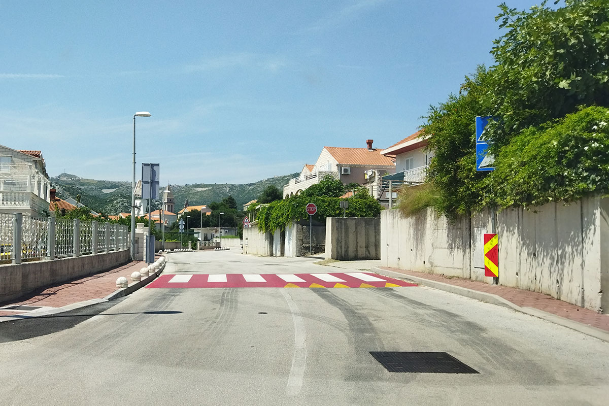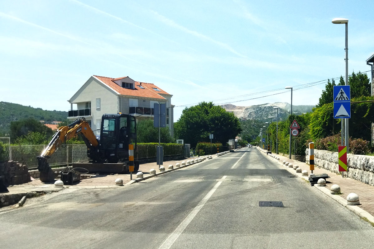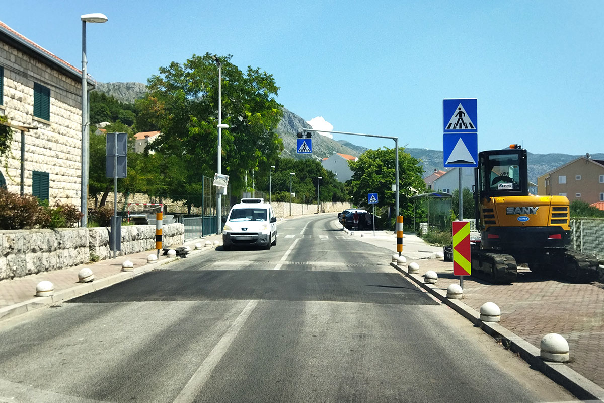 Na dionici Puta dr. Ante Sarčevića između Kantula i Mljekare (između dvije školske zgrade) u tijeku su radovi na uklanjanju starih gumenih usporivača prometa i postavljanja novih asfaltnih. Radovi se izvode sukladno izrađenoj projektnoj dokumentaciji i suglasnosti MUP-a, a nakon provedenog postupka javne nabave kao najpovoljniji izvođač je odabrana tvrtka Atis d.o.o. Uz implementaciju novih tehničkih rješenja horizontalne i vertikalne signalizacije radovi obuhvaćaju i izvođenje uzdignutih pješačkih prijelaza na novim usporivačima te uređenje i obnovu postojeće signalizacije.