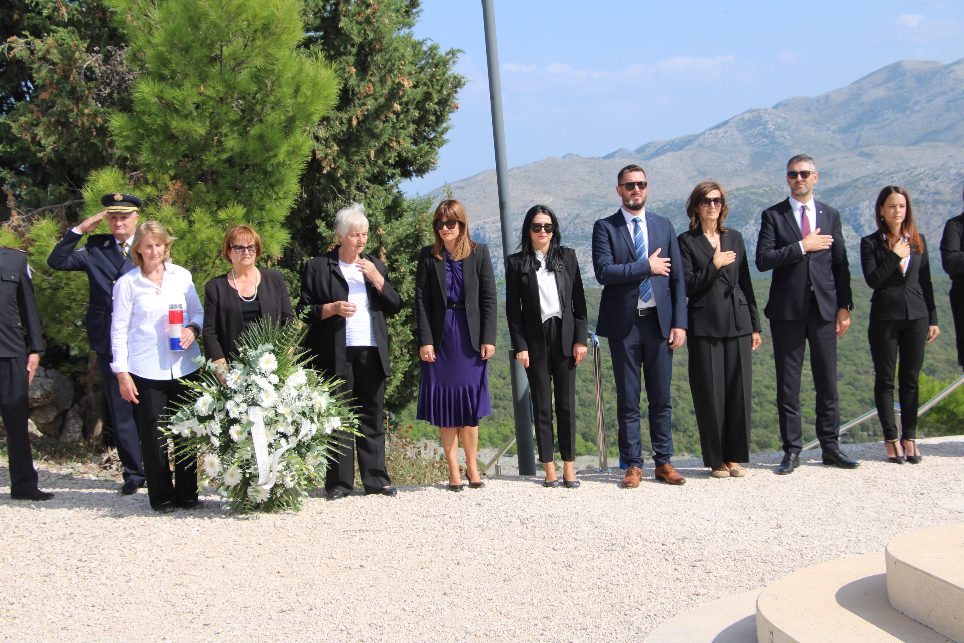 U amfiteatru na Srđu održan je tradicionalni prigodni školski program, nakon kojeg su uz molitvu položeni vijenci kod Spomen križa na Srđu.