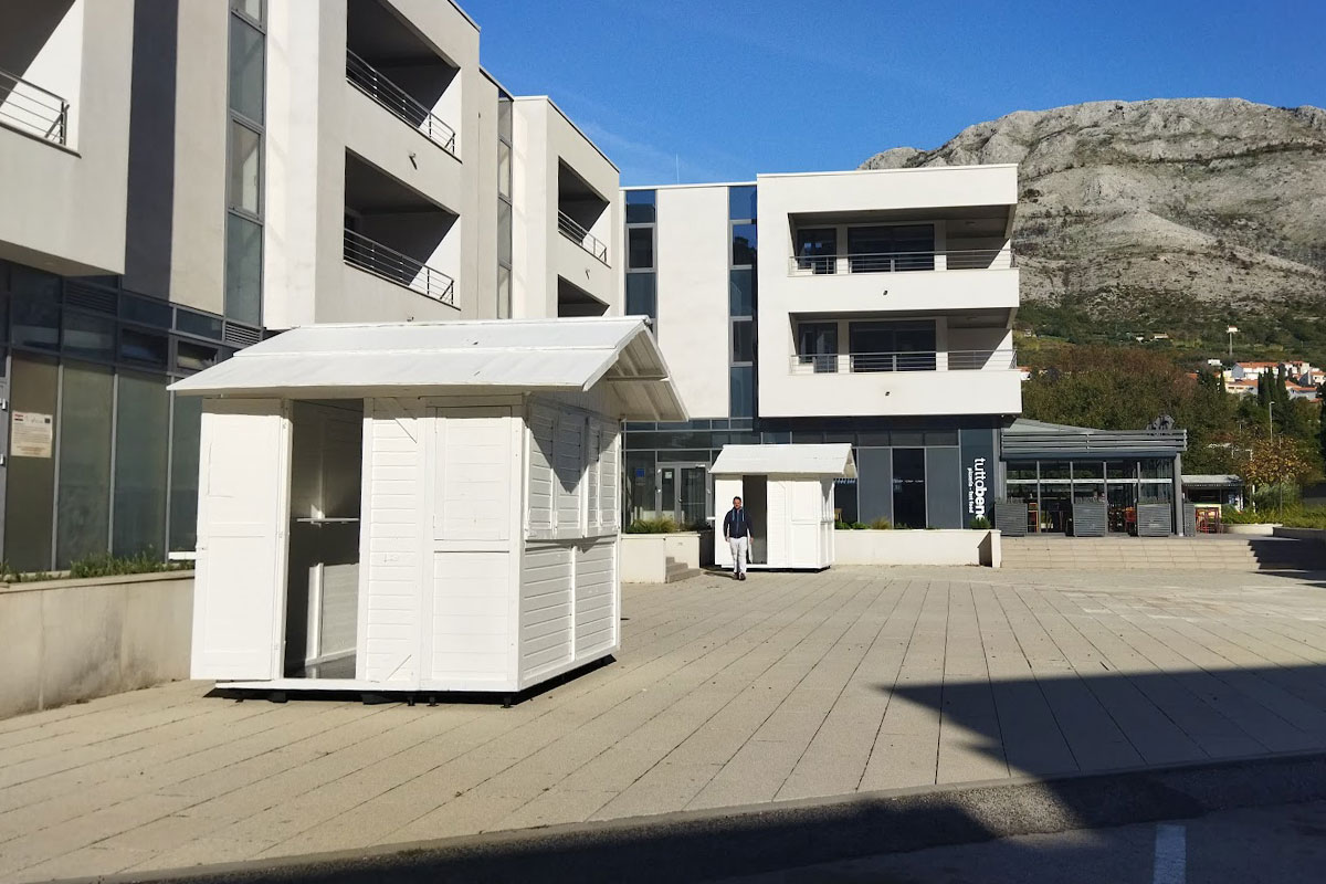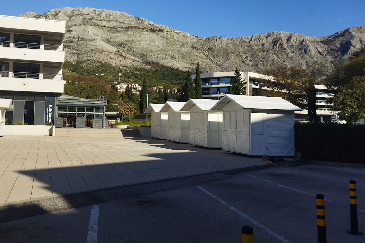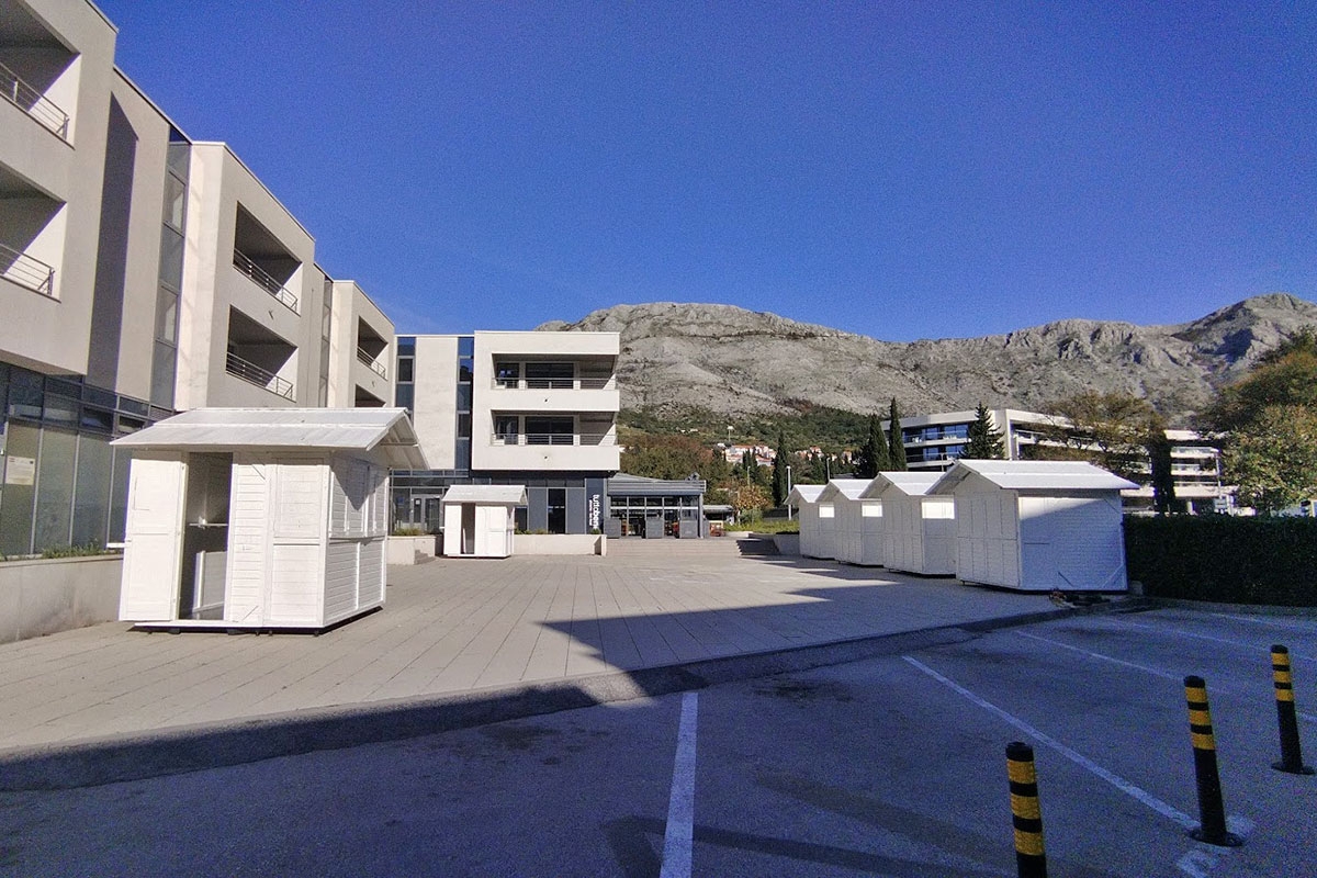 Na ulazni prostor trga postavljeni su gumeni stupići koji sprječavaju parkiranje između trga i zgrade općine, a parking će kao i prošlih godina biti omogućen u garaži ispod kućica.