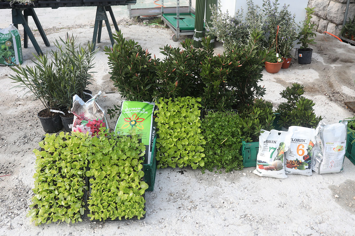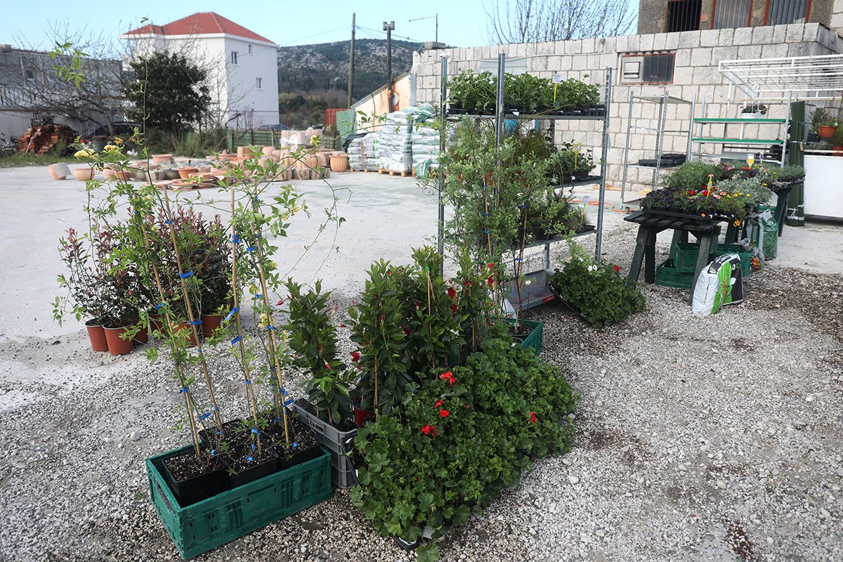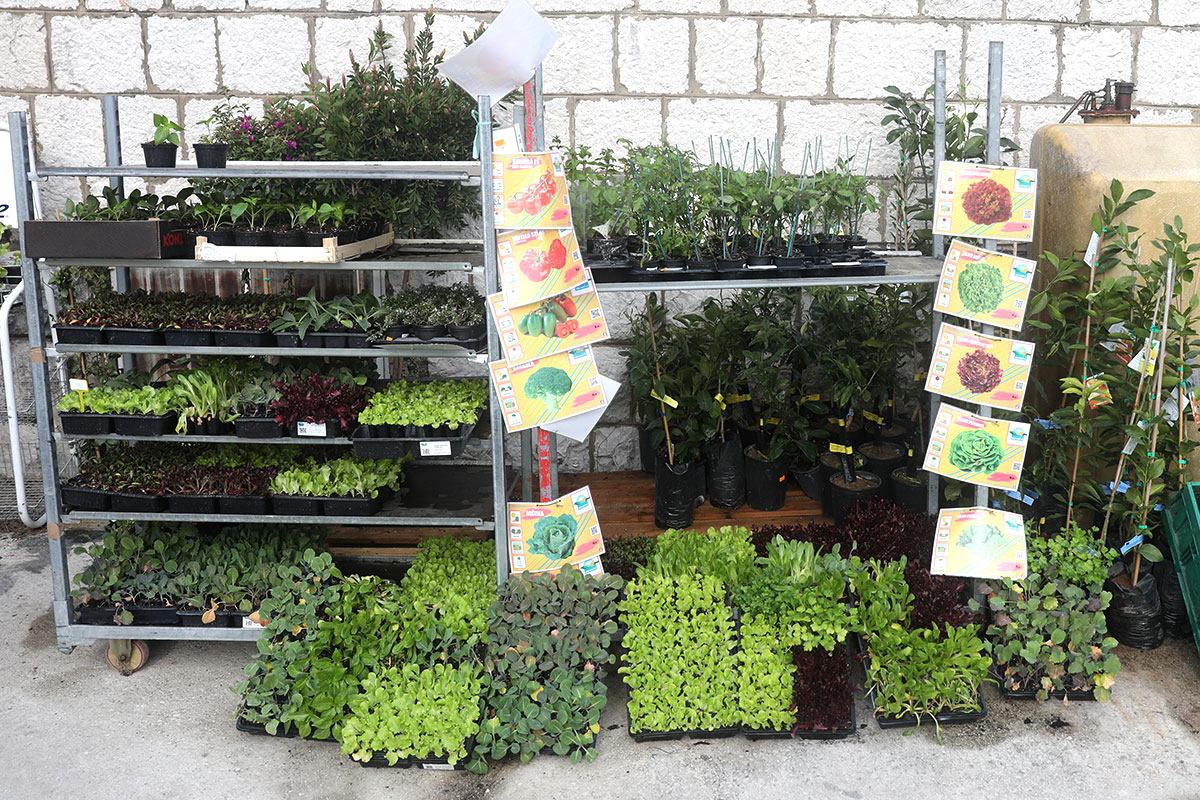 - Imamo razne sorte pomadora; Monte Carlo, Bobcat (vrsta pomadore koja se ne plijeve), Belle, Carmello, Cherry, Šljivarica .., paprike Flamingo, balančane classic, od salata Puterica, Kristal, presadnice blitve, razne kupusnjače kelj, brokula, versa .. Od agruma u ponudi imamo limune, naranče, mandarine, kumkvat .. trajnice za žive ograde i razne vrste ljetnog cvijeća.