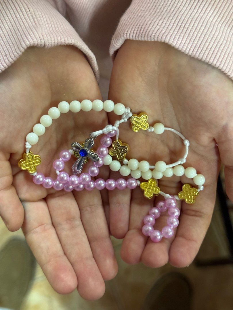 Na radionici su sudjelovali djeca koja se pripremaju za Prvu pričest kao i druga školska djeca. Uz pomoć odraslih djeca su izradila oko 90 krunica koje je župnik u nedjelju 19. listopada blagoslovio. Da druženje bude slađe, mame su donijele kolače, a župnik kavu i sokove.