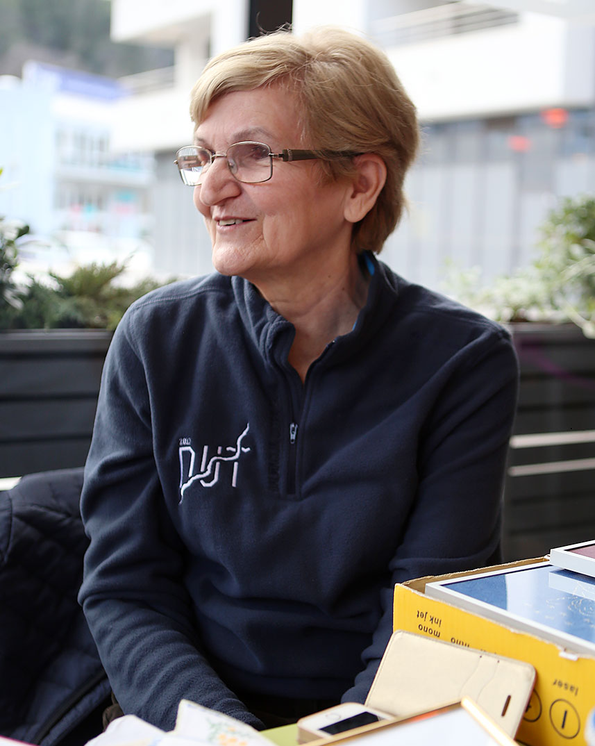 Na zamolbu profesorice Tanje Galjuf počela sam volontirati u OŠ Župa dubrovačka. Srijedom ih učim vesti, najviše punjeni vez. Nema nas puno, dolazi mi sedam, osam cura i tako se družimo i vezemo. Trenutačno vezemo slova glagoljice, izrađujemo torbice gdje uz vez učimo i to staro hrvatsko pismo.