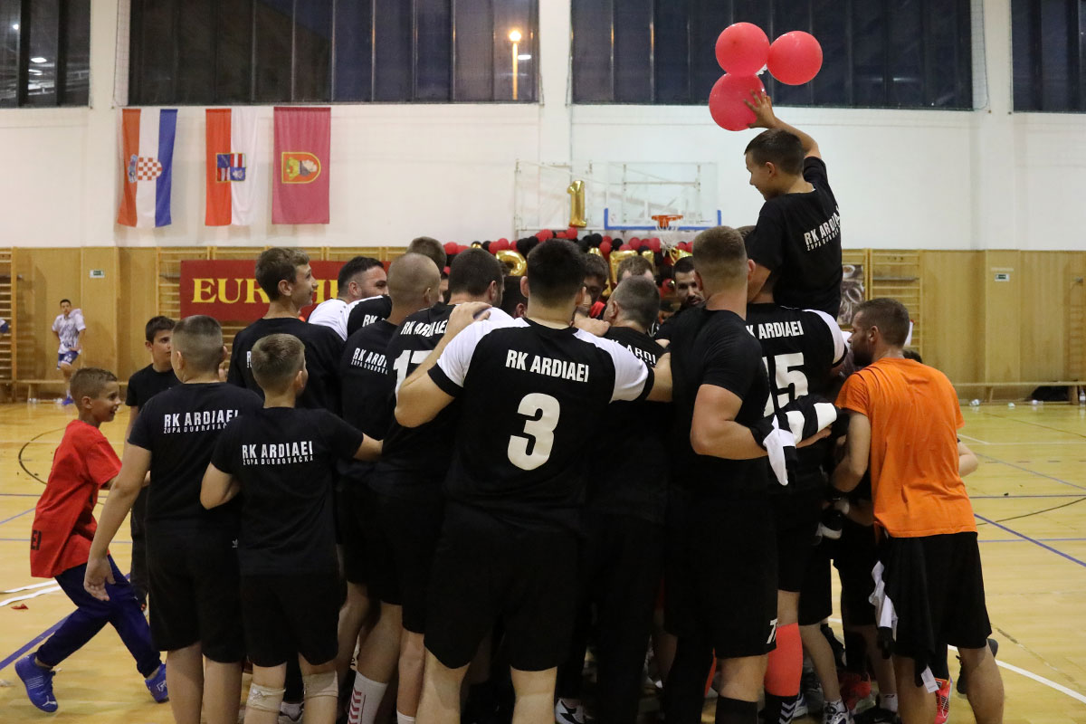 Uvjerljivo, kako su to činili tijekom cijelog prvenstva, igrači župskog rukometnog kluba Ardiaei zaključili su svoju prvu natjecateljsku sezonu. Pobjedom protiv Kamička iz Sinja 38:23 proslavljen je naslov prvaka 2. HRL-jug  i plasman u veći rang natjecanja - 1. HRL-jug. U utakmici bez rezultatske neizvjesnosti Ardiaei je od samog početka stvorio prednost koju je iz minute u minutu povećavao konačnih do 15 razlike.