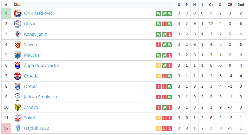Ostali susreti kola; Komin: Gusar – Hajduk 1932. 4:1, Gabrile: Croatia – Žrnovo 2:0, Gruda: Slaven – Konavljanin 2:0, Smokvica: Jadran 1929. – Sokol 1:0, Krvavac: Maestral – ONK Metković 0:1