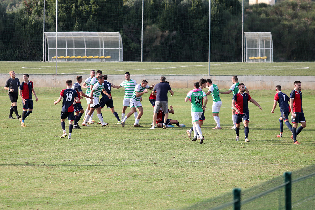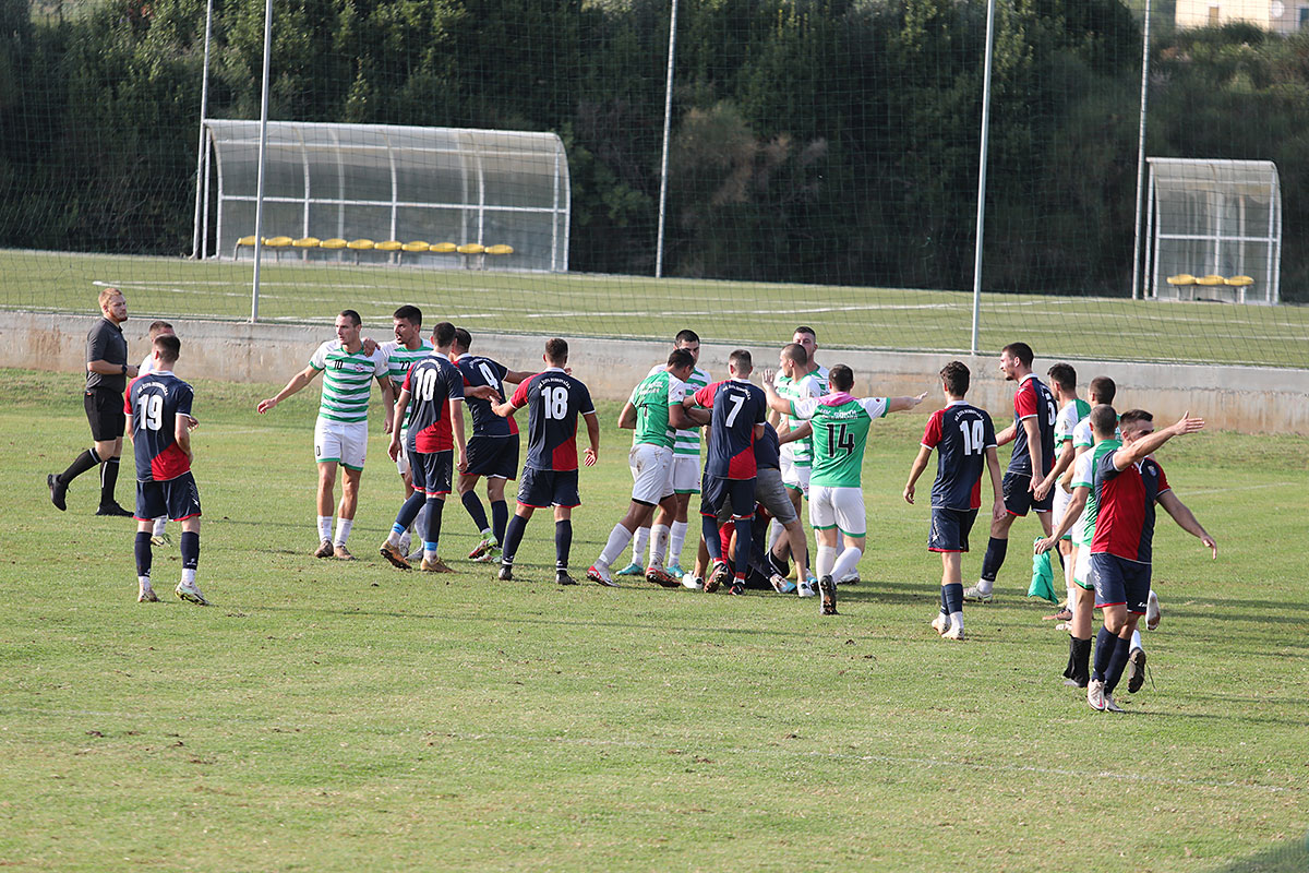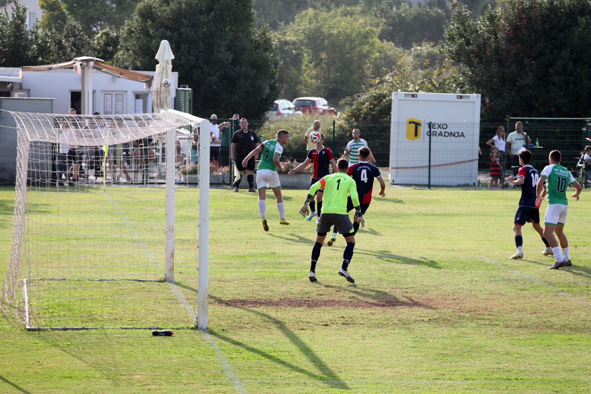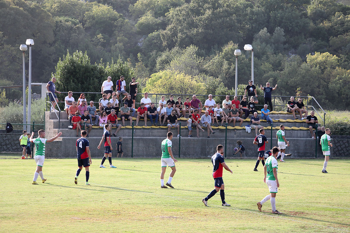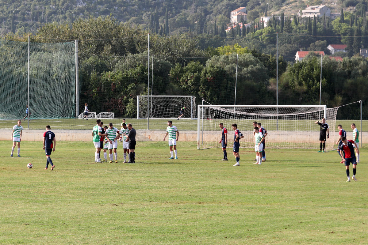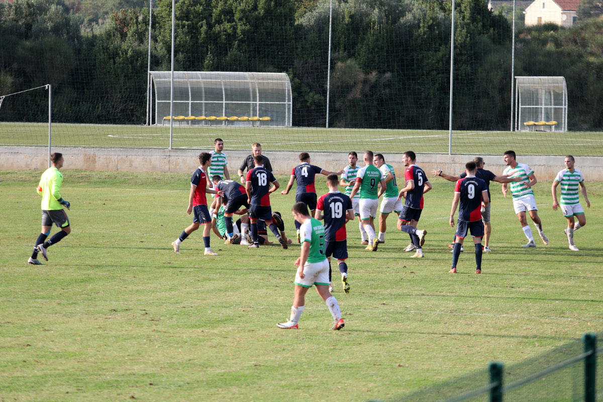 Utakmica dva kluba koja su pobjedama otvorila ovogodišnju sezonu, umjesto lijepog i efikasnog nogometa donijela je sramotne scene. Nakon 40 minuta igre bez većih prilika, vratar Sokola Leo Kokanović u skoku hvata loptu ispred napadača Župe, ali onda rukama u kojima i dalje drži loptu udara igrača Župe.