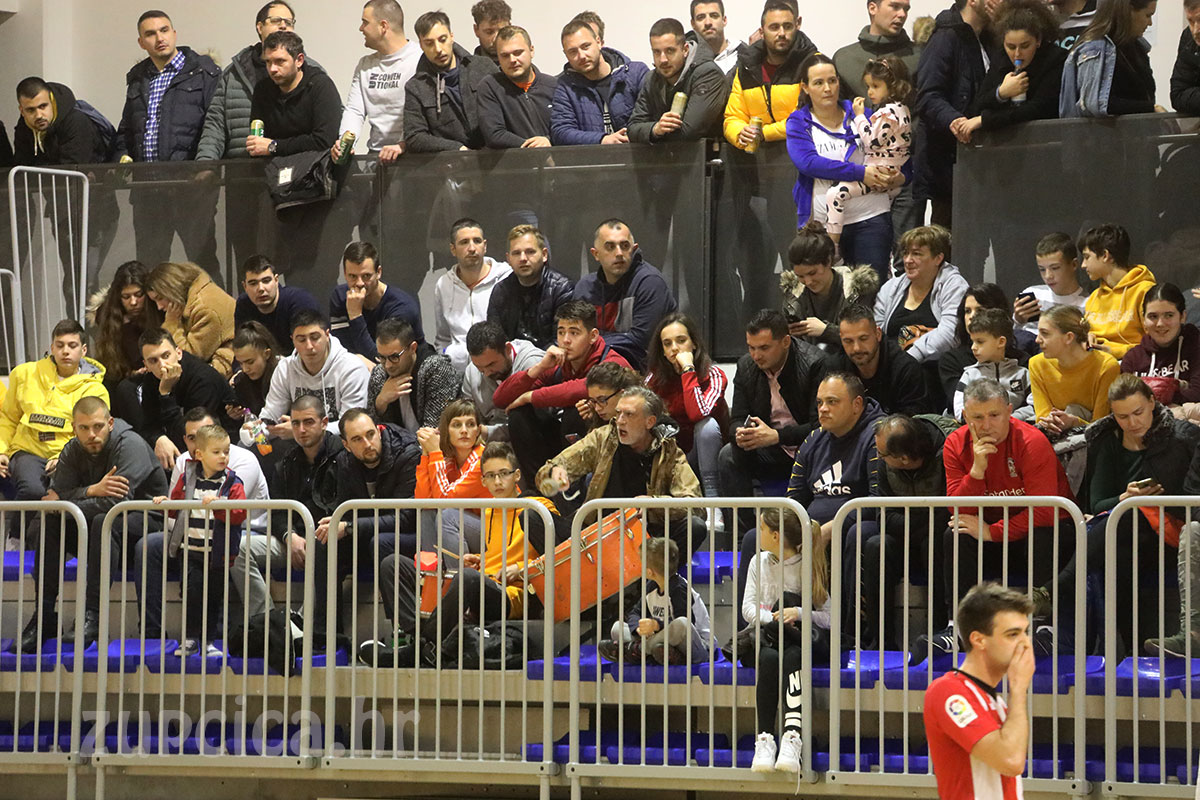 Brojniju podršku su imali Postranjani, u "njihovim bojama" je bilo 70 posto dvorane, što su iskoristili odmah na startu i preko Ivana Keleza poveli već u prvoj minuti. U nastavku prvog dijela Brgaćani stalnim napadima bezuspješno pokušavaju doći do izjednačenja, a Postranjani prijete opasnim kontrama, te pred odmor iz slobodnog udarca Vicko Miloslavić povećava prednost na 2:0.