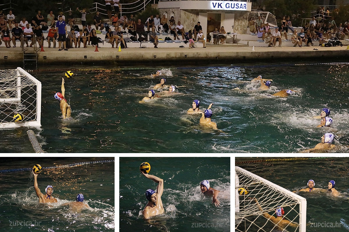 Kao uvod u zabavu Feste Svetog Roka sinoć je na plivalištu odigrana utakmica između Gusara i kombinirane seniorsko-juniorske momčadi Jug Adriatic osiguranja. Bila je to, ako izuzmemo utakmice Divlje lige, vjerojatno jedina seniorska utakmica koja se u Mlinima mogla gledati ovog ljeta, utakmica nekada ljetnog sporta koji je okupljao brojnu publiku koja je pratila uzbudljive i napete drugoligaške utakmice na plivalištima duž Jadranske obale. Ova utakmica je bila i zamjena za onu tradicionalnu na Sv.Roka između Gusara i Cavtata jer Cavtat zbog ovakvog stanja u hrvatskom vaterpolu nema seniorsku momčad.