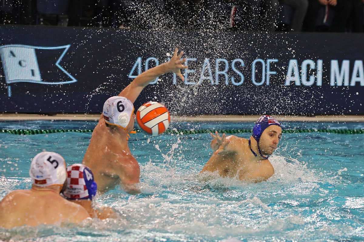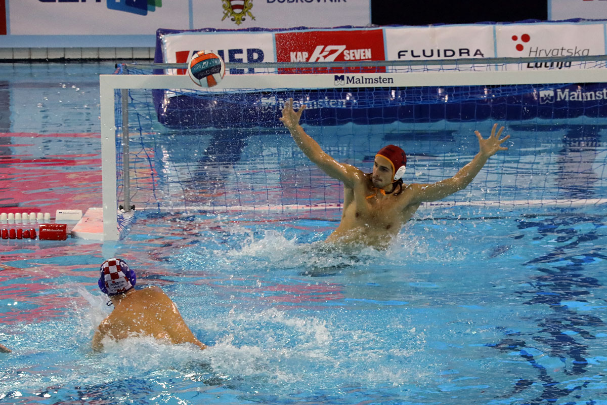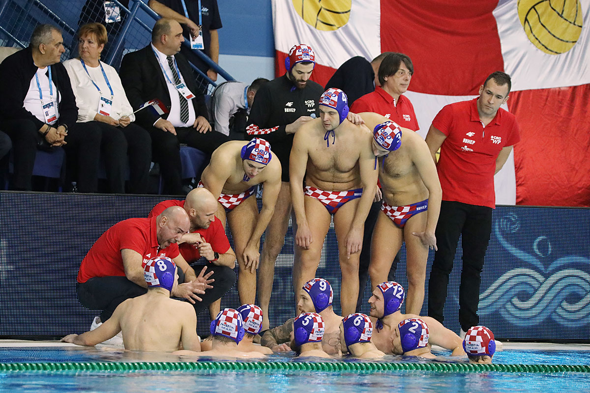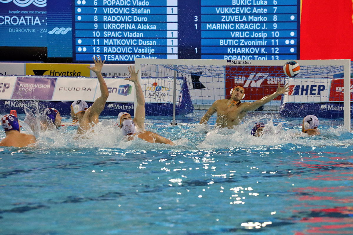 Nakon odličnog otvaranja i vodstva 2:0 u užarenom grotlu tribina gruškog bazena, Hrvatska opet kao i protiv Španjolaca pada u drugoj četvrtini kada Crnogorci preokreću na 6:5 i ima vodstvo od 9:7, ali tri uzastopna gola Crnogorcima pred sam kraj donose prednost od 9:10. Dvije minute prije kraja, kod 10:10 Crna Gora je zbog brutalnosti suđene Vladi Popadiću ostala do kraja susreta s igračem manje, ali Fatović iz peterca gađa gredu. Nije nas išlo ni ju zadnjem napadu, kada kod rezultata 11:11 ne koristimo dva igrača više i utakmica odlazi u u raspucavanje peteraca.