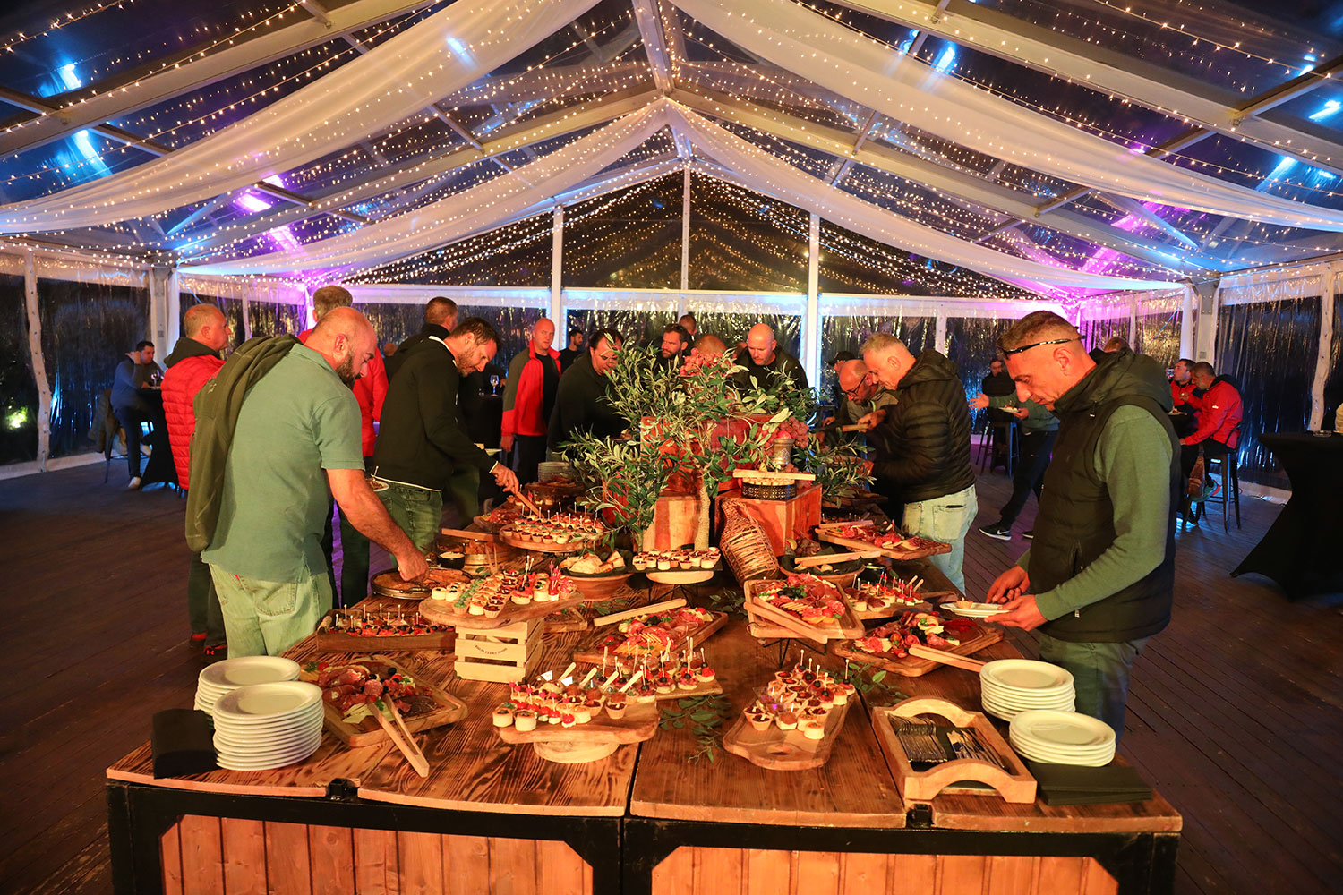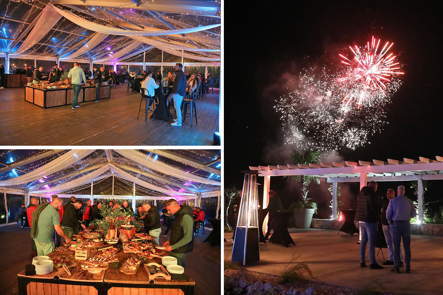 Nakon cjelodnevnog ribolova prvi dan Big Game Felun 2025. turnira ribari sudionici natjecanja, članovi Feluna, sponzori i gosti uživali su u tratamentu i ugodnom druženju u Heritage Event Venue na Prahivcu. Sve je začinjeno za Felunove zabave već uobičajenim vatrometom.