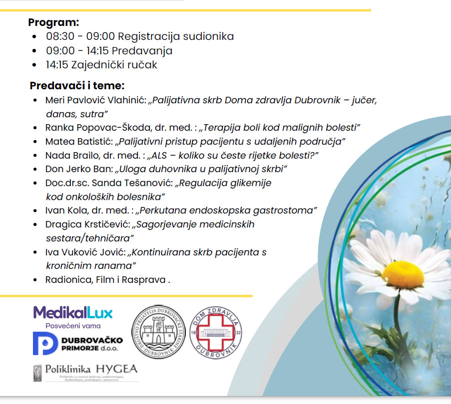 Proslava se obilježava u organizaciji Doma zdravlja Dubrovnik uz Tečaj pod nazivom „Palijativna skrb u zajednici-desetljeće profesionalnih izazova i rješenja.“
