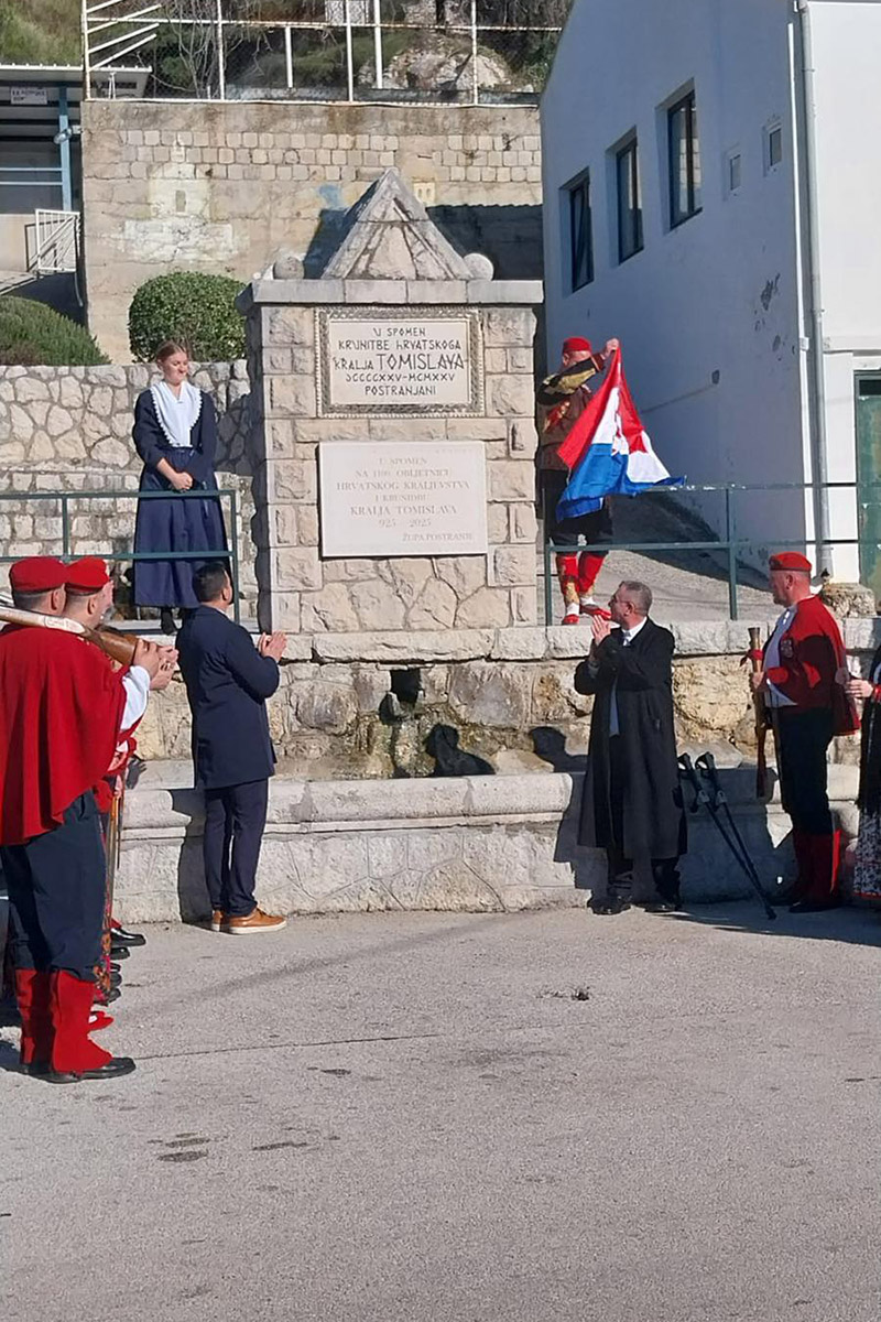 Na Bravinjcu, na mjestu gdje je prije sto godina, davne 1925. postavljena ploča "U spomen krunidbe hrvatskoga kralja Tomislava", vjernici Župe Postranje danas su otkrili novu spomen ploču "U spomen na 1100. obljetnicu Hrvatskog kraljevstva i krunidbu kralja Tomislava 925. - 2025."