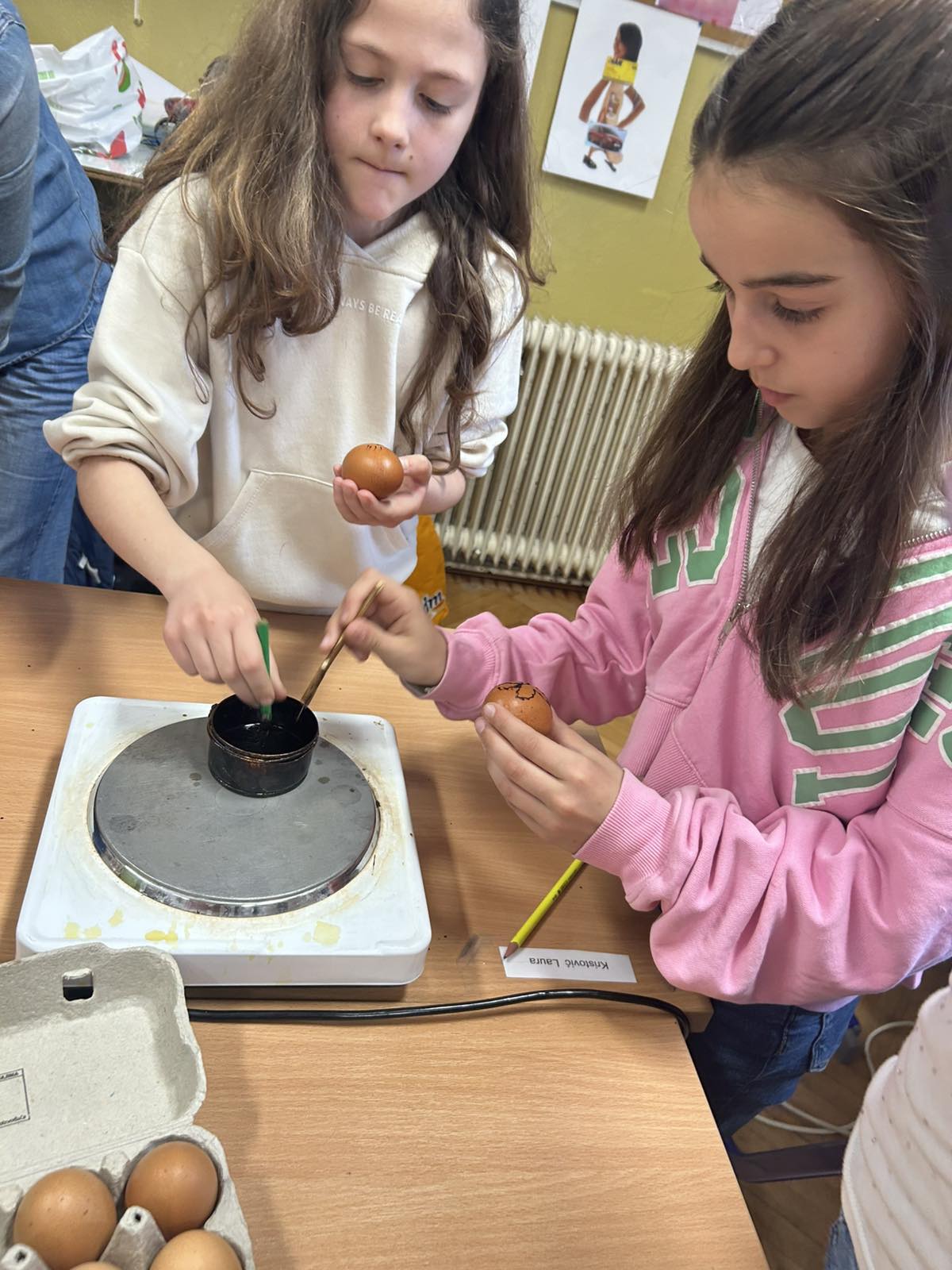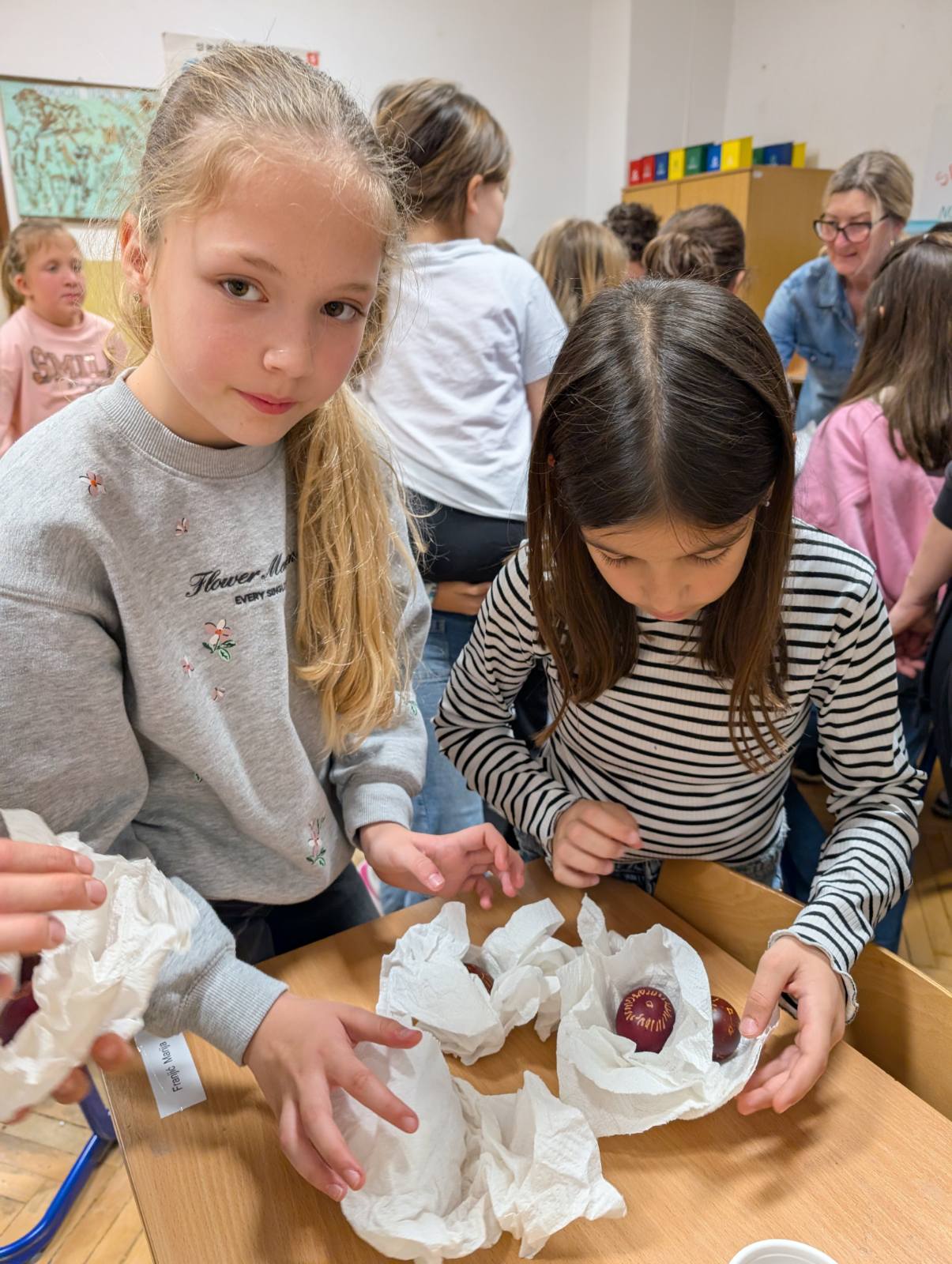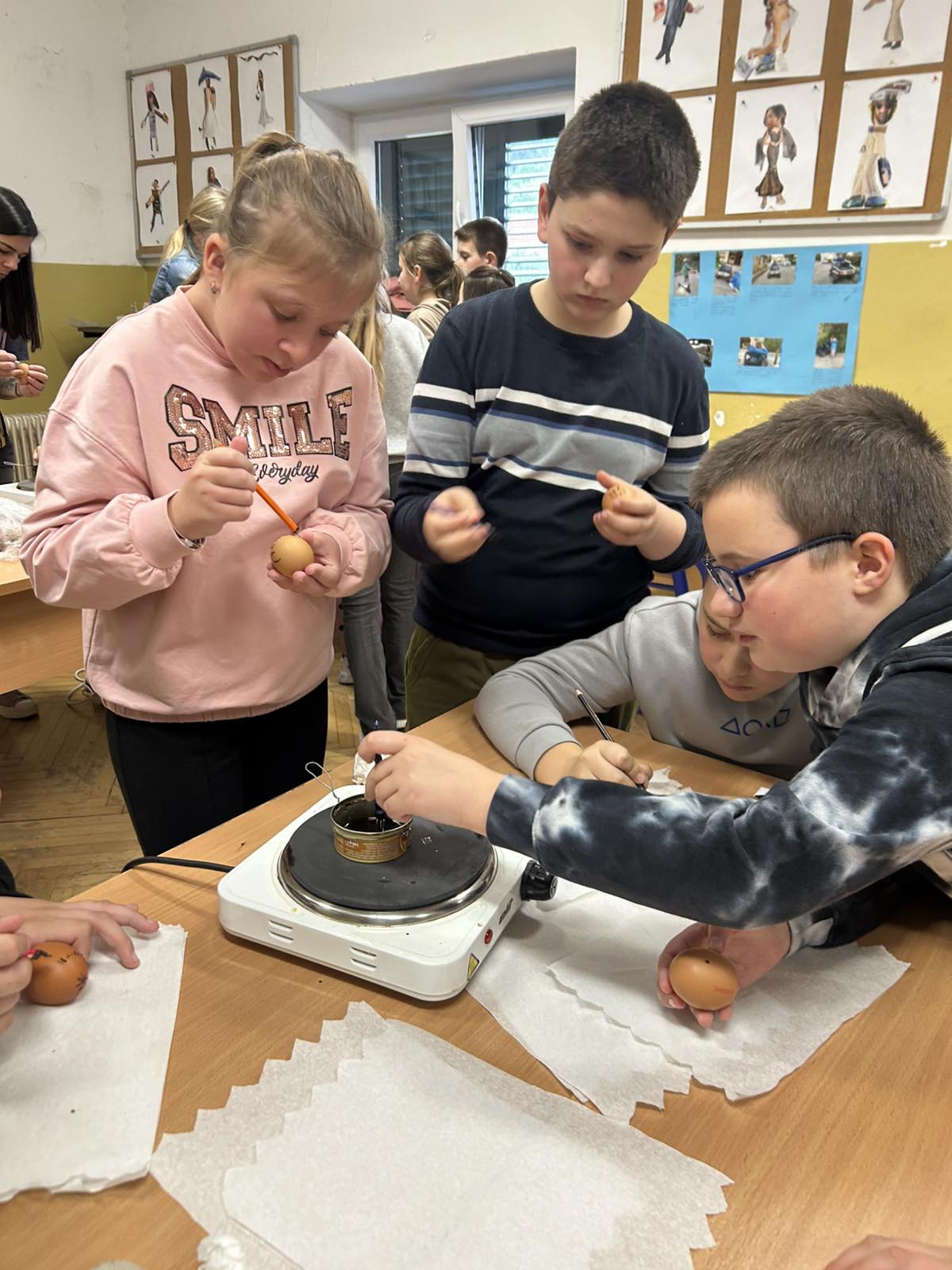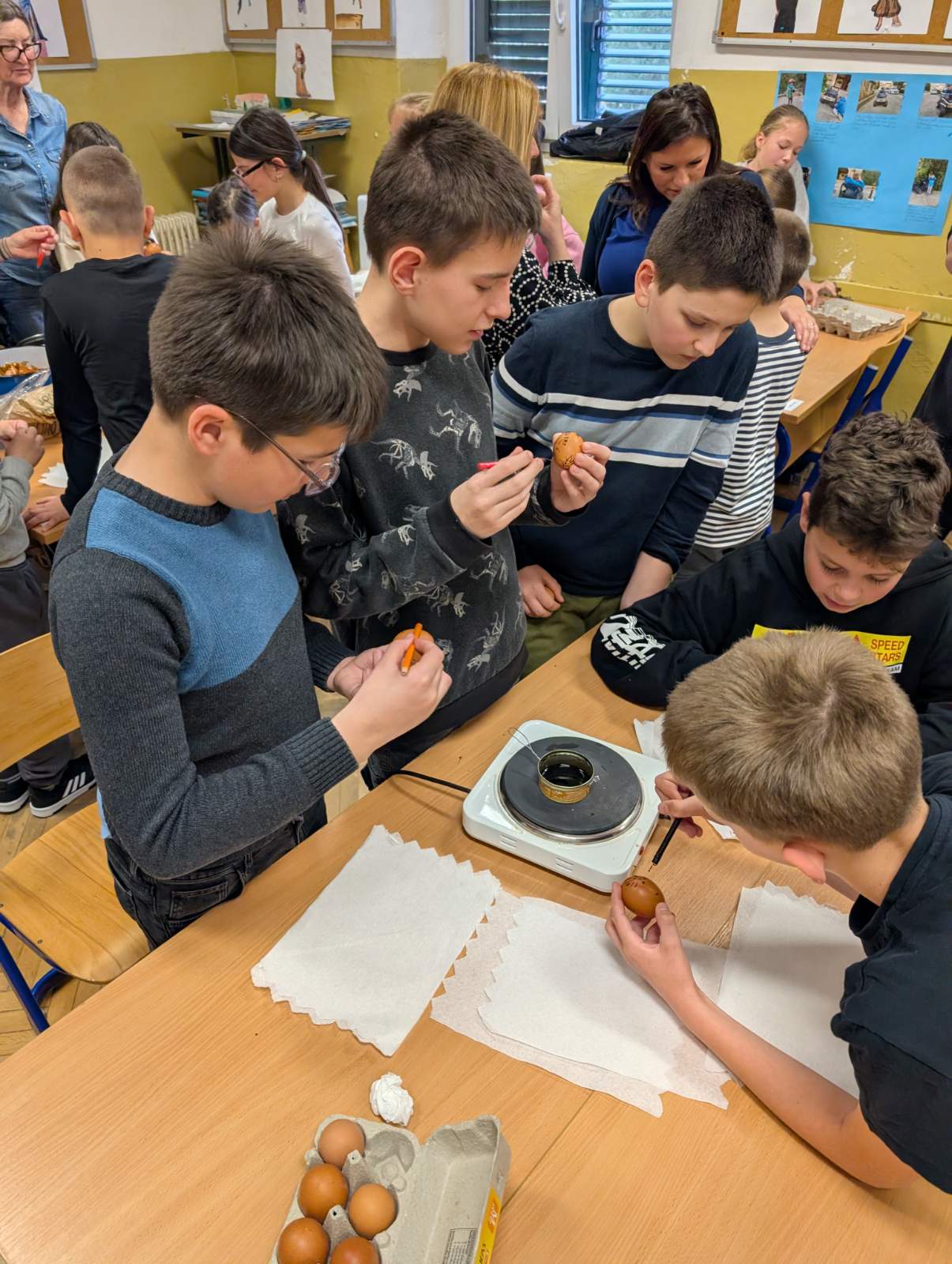 Jučer, u četvrtak, 26. ožujka u učionici 4. d razreda, Osnovne škole Župa dubrovačka, oživjela je tradicija. Učenici 4. d razreda u okviru projekta Nonići, ugostili su nonu Ljubu koja ih je poučila, a može se reći i naučila kako napengati jaje. Gospođa Ljube Obšivač, u ovo preduskršnje vrijeme, ovaj put je i njima, kao inače svojim unučicama, prenijela ovu prelijepu vještinu i tradicijski običaj našega zavičaja.