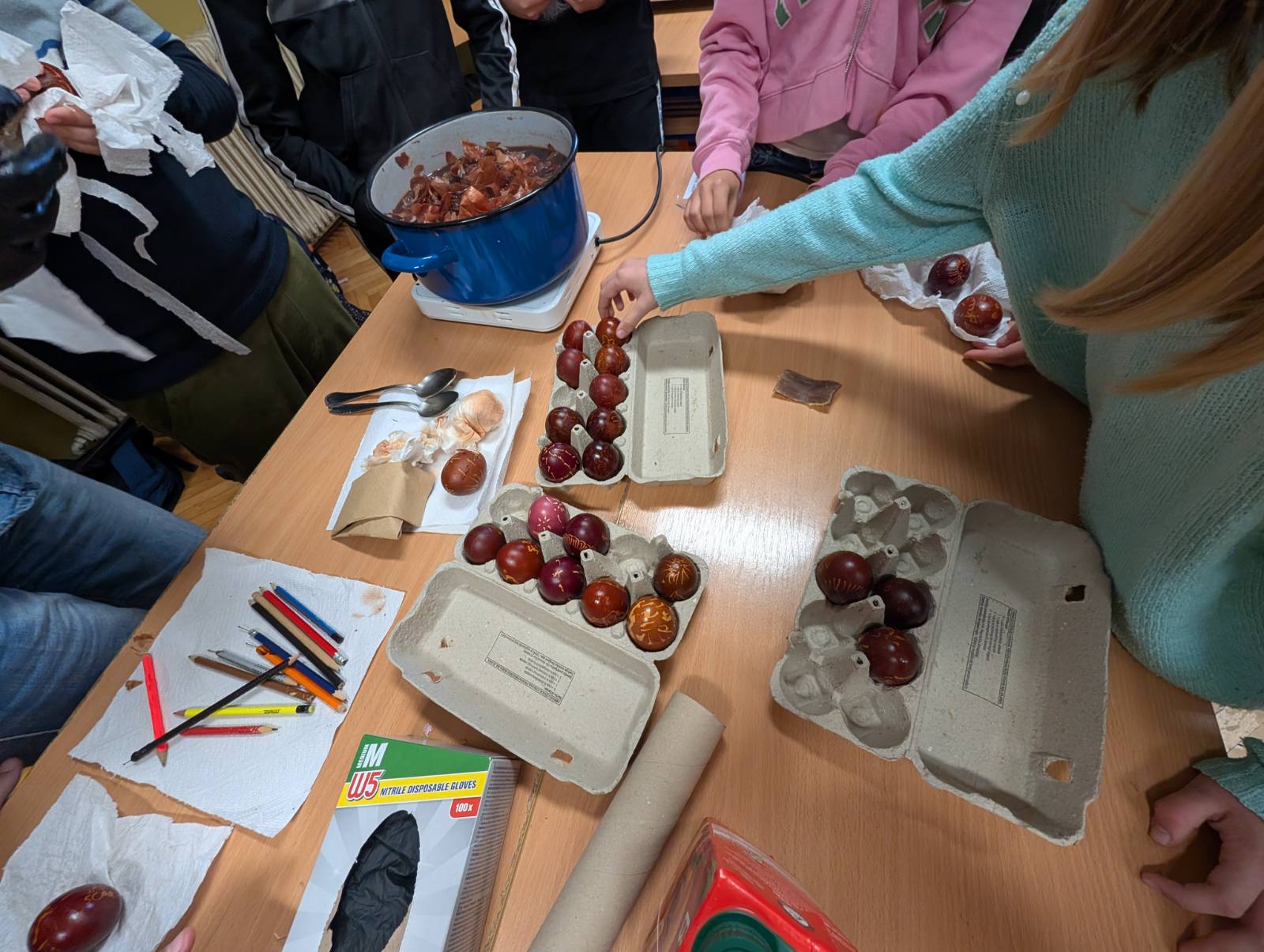 Kao što je i sama rekla, kako u učenju uvijek jest, tako i u penganju jaja, da bi djeca naučila, morate ih poučiti, ali morate ih i pustiti da sami „zašvrljaju“.