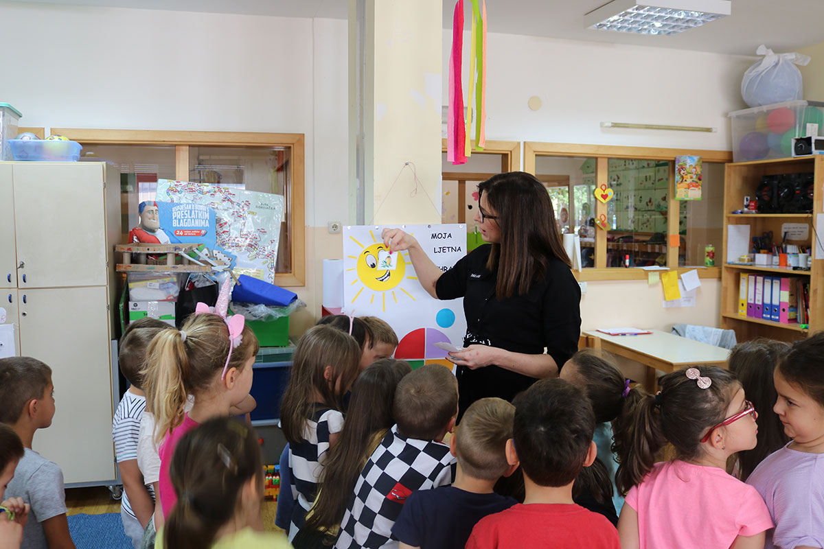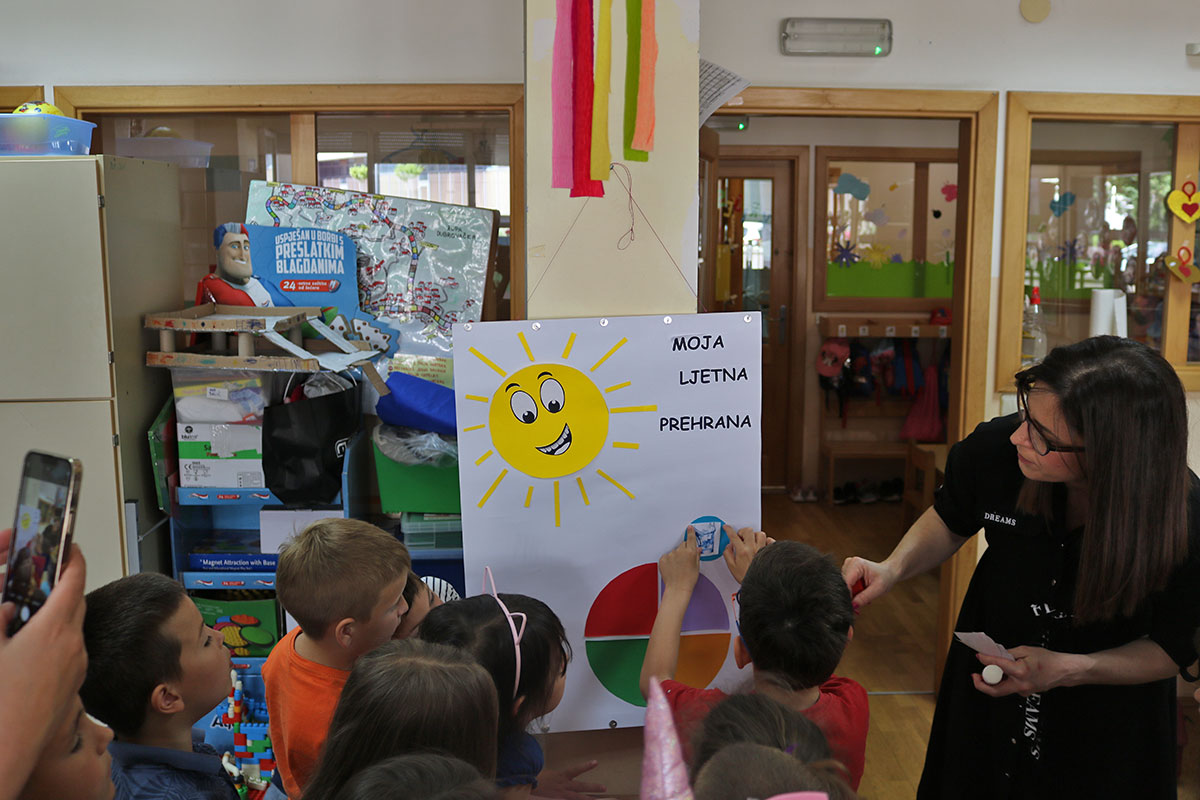 Kako se približavaju ljetni mjeseci, djeca predškolskih skupina su imala priliku naučiti na koji način se štiti od sunca. Predstavljena im je važnost prikladne odjeće, kreme za zaštitu od UV zračenja, kao i važnost pravilne prehrane. Sve predškolske skupine su za poklon dobile kreme za zaštitu od UV zračenja te plakate i letke o zaštiti od sunca.