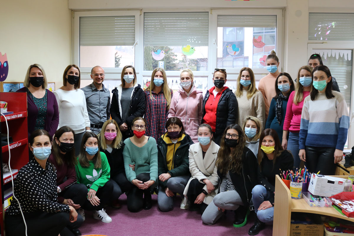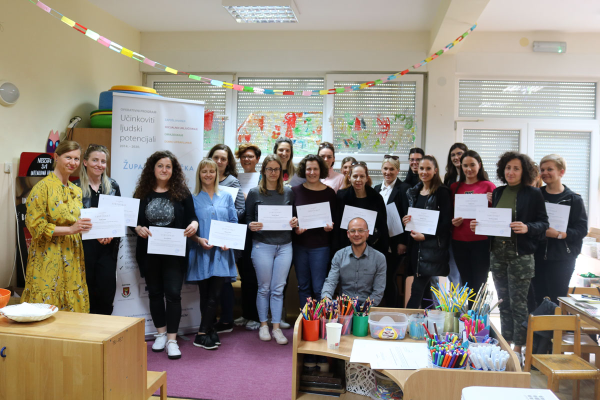Odgojiteljice i stručne suradnice sudjelovale su na 3 edukacije u kojima je ukupno stručno osposobljeno 45 osoba. Osim toga, zaposleno je 12 odgajateljica, pedagog, psiholog, edukacijski rehabilitator i logoped, kuharica i 3 spremačice te administrator projekta.