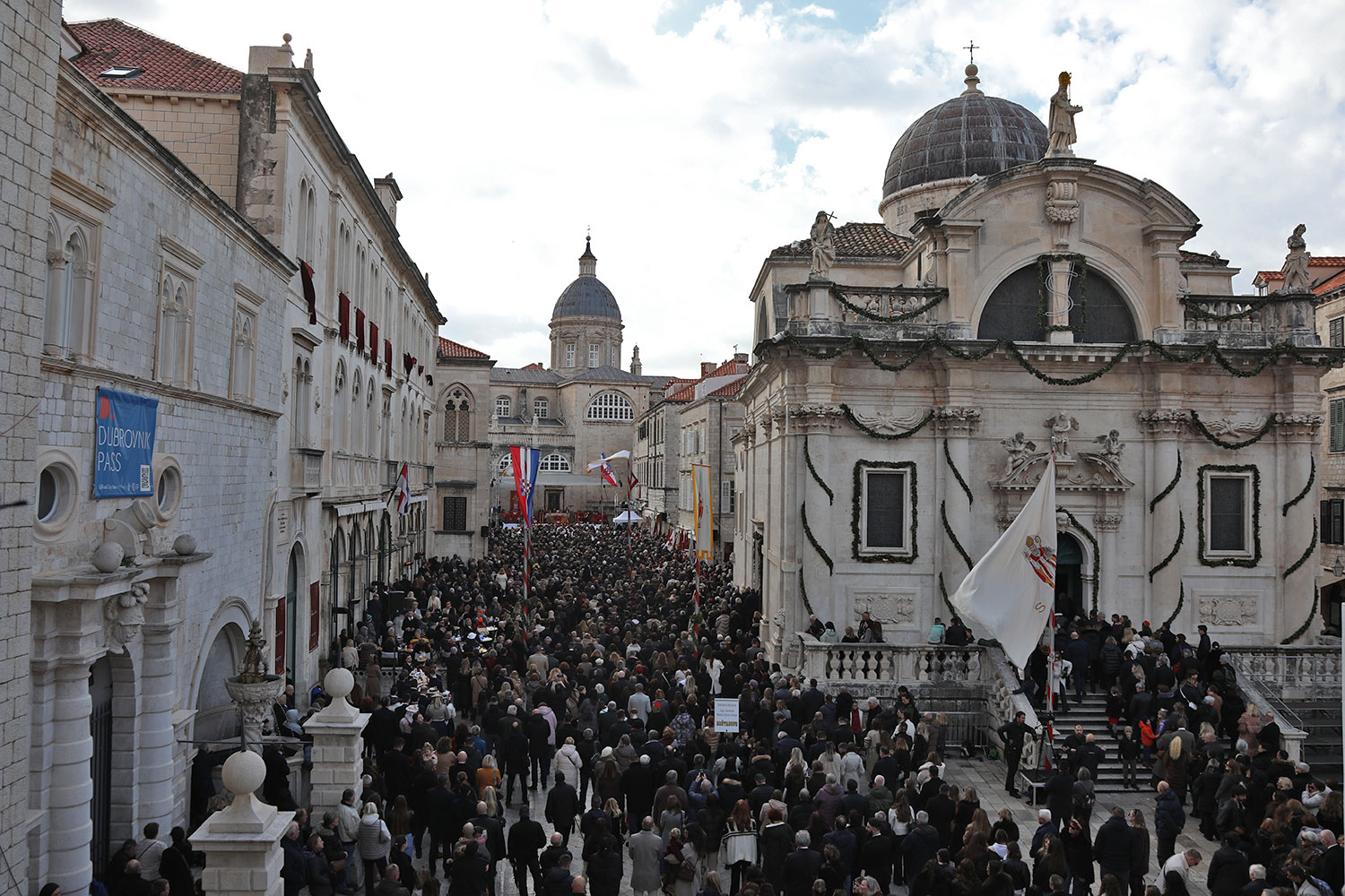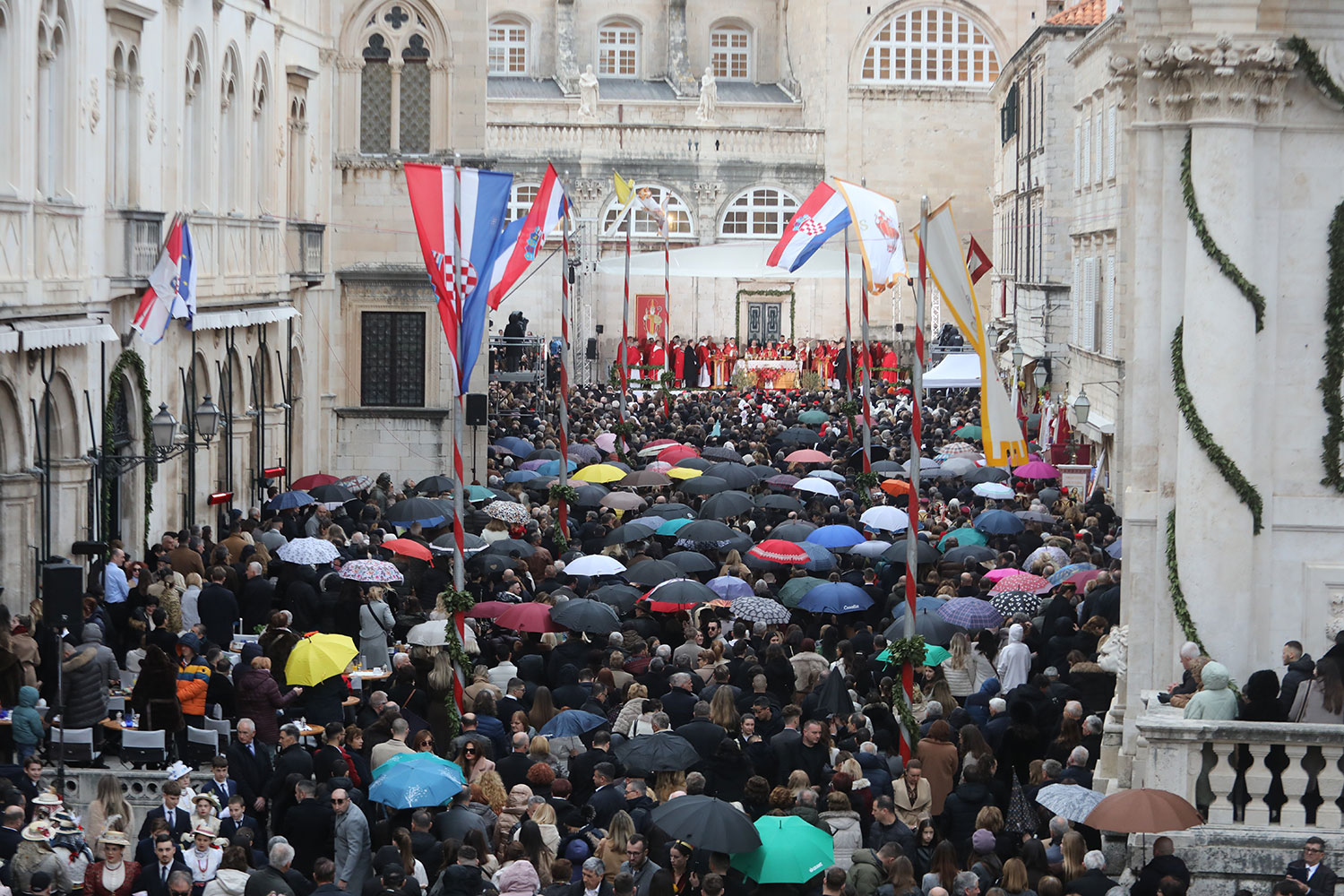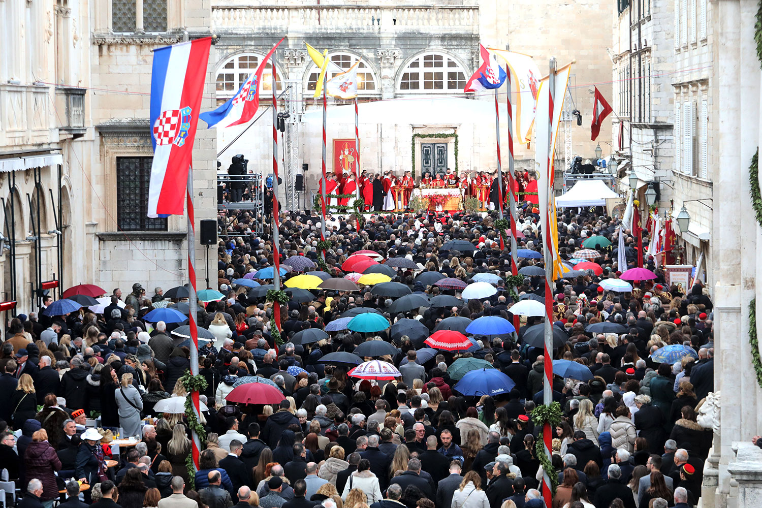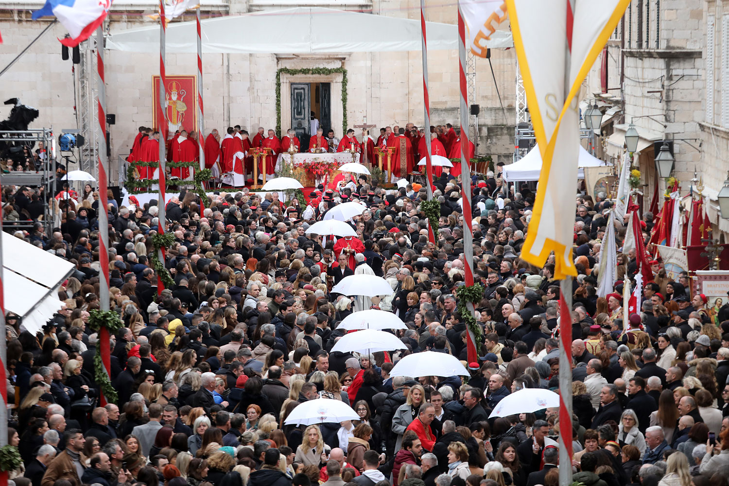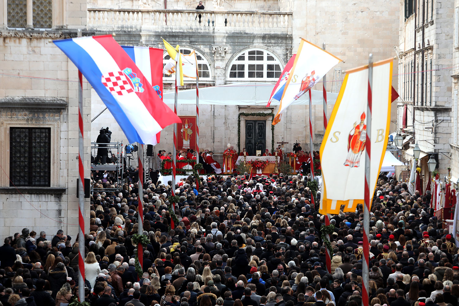 Svečano pontifikalno euharistijsko slavlje Feste sv. Vlaha 2026. godine u utorak 3. veljače ispred katedrale Gospe Velike u Dubrovniku uz sudjelovanje velikog broja vjernika predvodio je hvarski biskup Ranko Vidović u suslavlju s dvanaest nadbiskupa i biskupa i velikog broja svećenika.