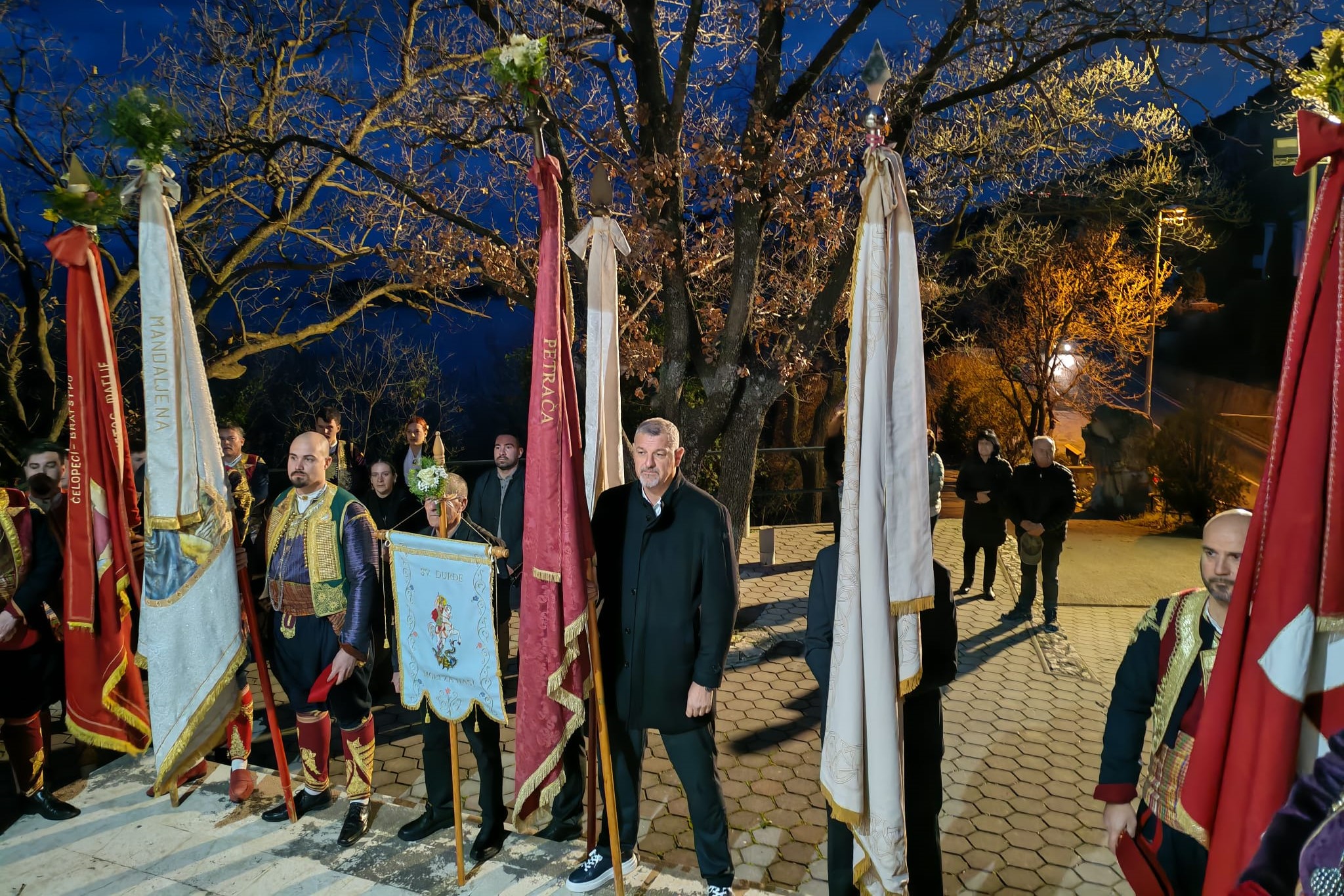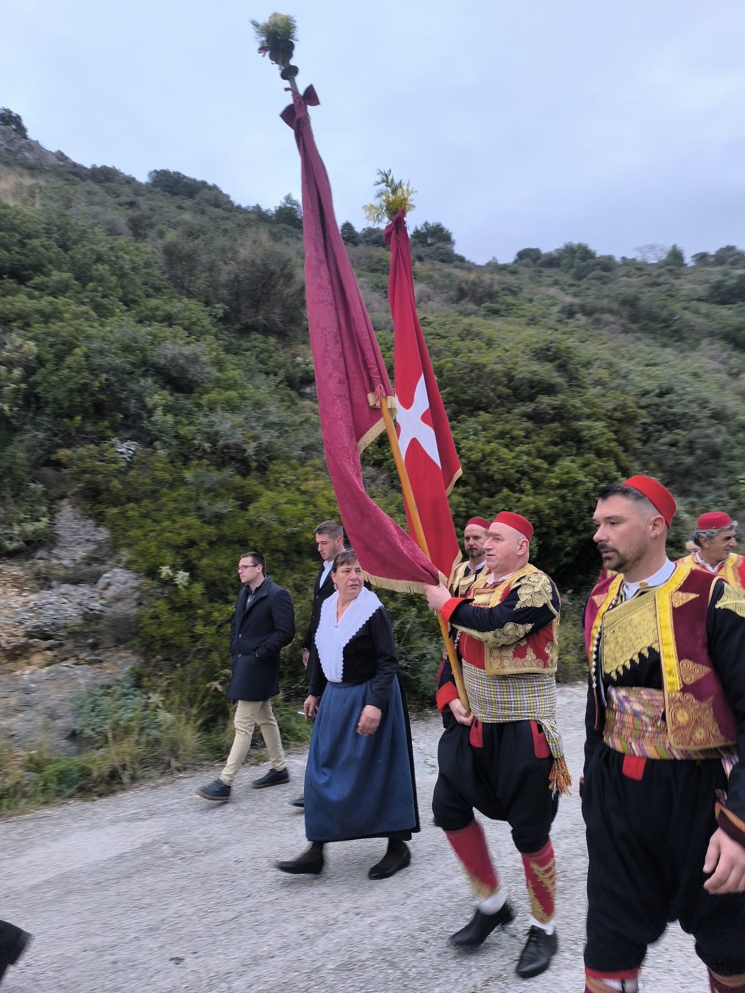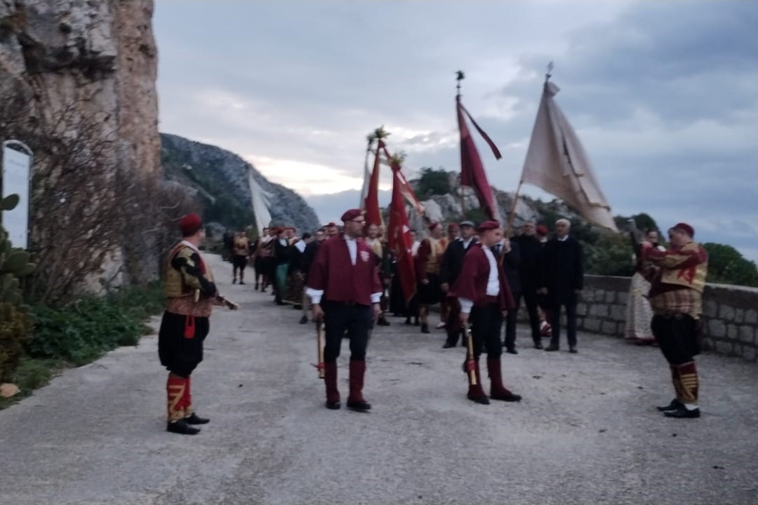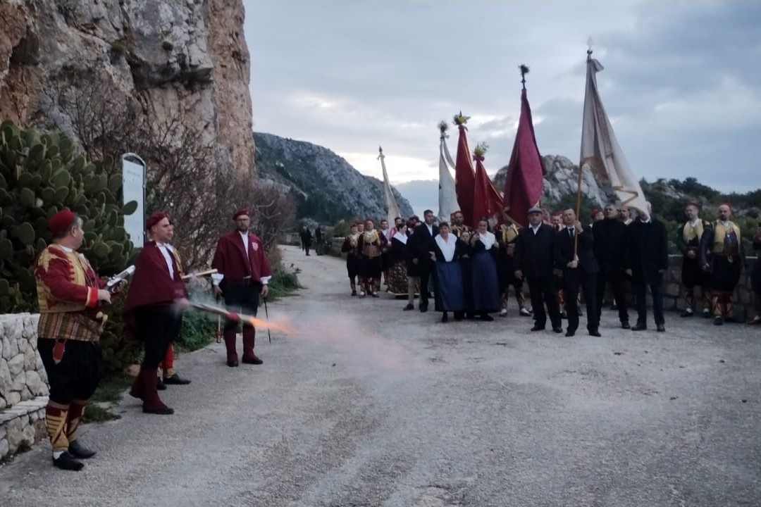 Vjernici Župe Mandaljena sa svojim barjaktarima i barjacima i nekoliko župskih trombunjera, okupili su se rano jutros u 6:15 kod crkve Gospe od Obrane na Dupcu ta nakon blagoslova krenuli pješke kroz Orsulu na Festu u Grad.  Hodočasnicima i barjaktarima iz Mandaljene pridružio se i barjak sv. Ilara s barjaktarom, a na putu prema Gradu trombunima i barjacima su pozdravili ostatke kapelice stare Gospe (kod skretanja na put kroz Orsulu),  spomenik domobranima u Orsuli, ostatke kapelice sv. Orsule te crkvu sv. Jakova.
