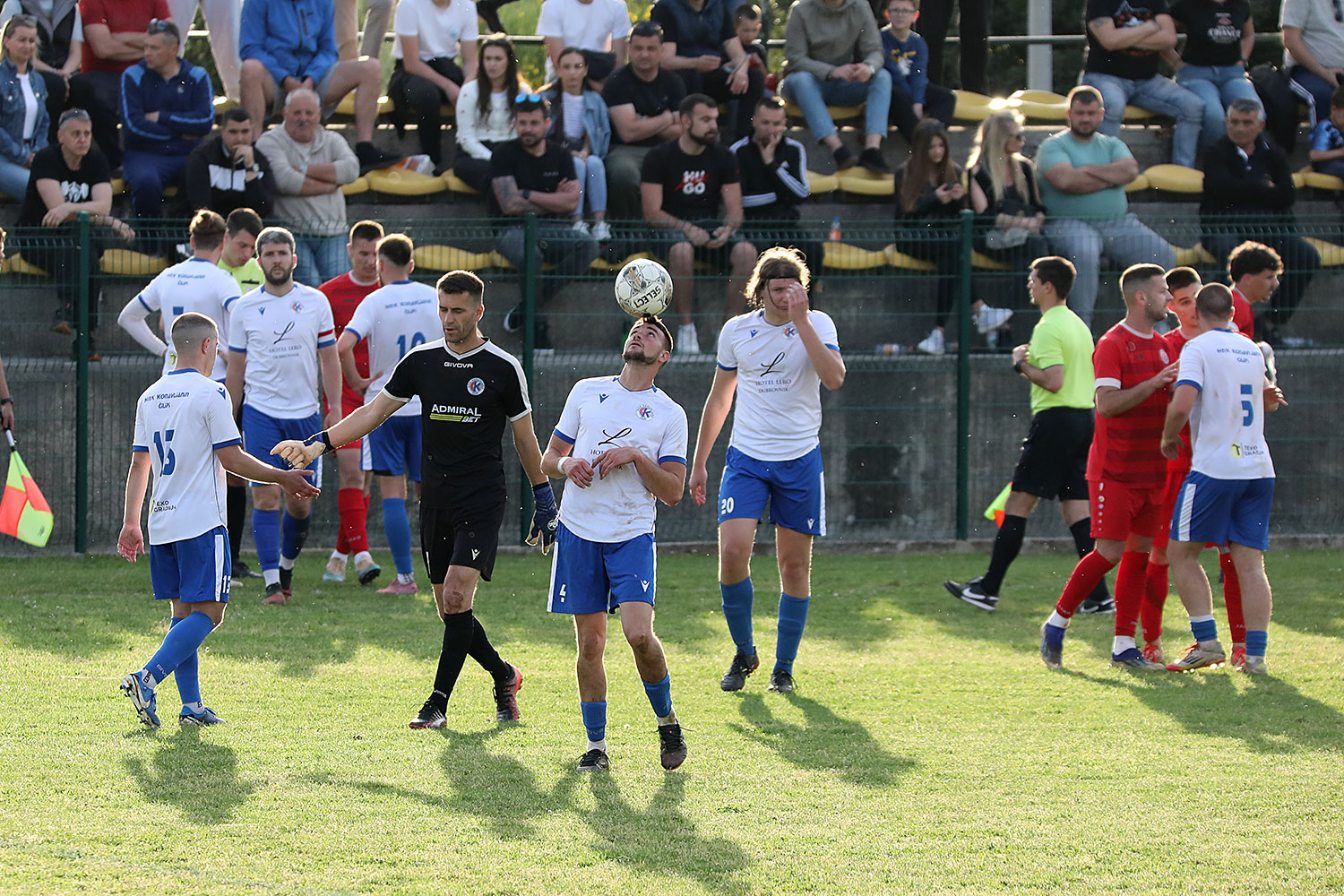Prvo poluvrijeme bez golova, Konavljanin opasniji, dva puta pogađaju stativu nakon prodora po desnoj strani. Momčad iz Čilipa je bolja i na početku drugog dijela, prva dolazi do vodstva golom Marka Trtomana u 53. minuti. Nakon primljenog gola župska momčad igra puno bolje, stvara prilike za izjednačenje, najveću ne koristi Matej Perić sredinom drugog dijela kada nakon prolaska po desnoj strani i dodavanja Viktora Lekaja, sam pred golmanom puca pored stative. Par minuta kasnije ipak izjednačenje, Viktor Lekaj koristi loš izlazak golmana Konavljanina te glavom sa 16 metara pogađa mrežu za konačnih 1:1.