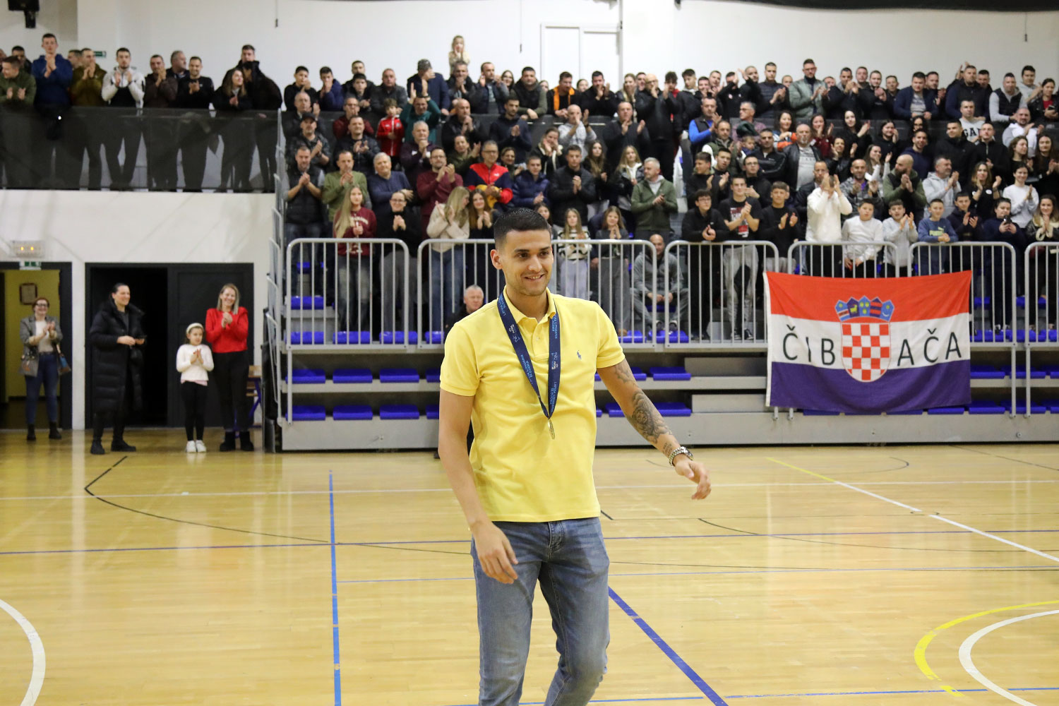 Dvorana na Mljekari ispunjena do posljednjeg mjesta, poluvrijeme druge četvrtfinalne utakmice turnira, vrijeme je za doček brončanog s Europskog futsal prvenstva.